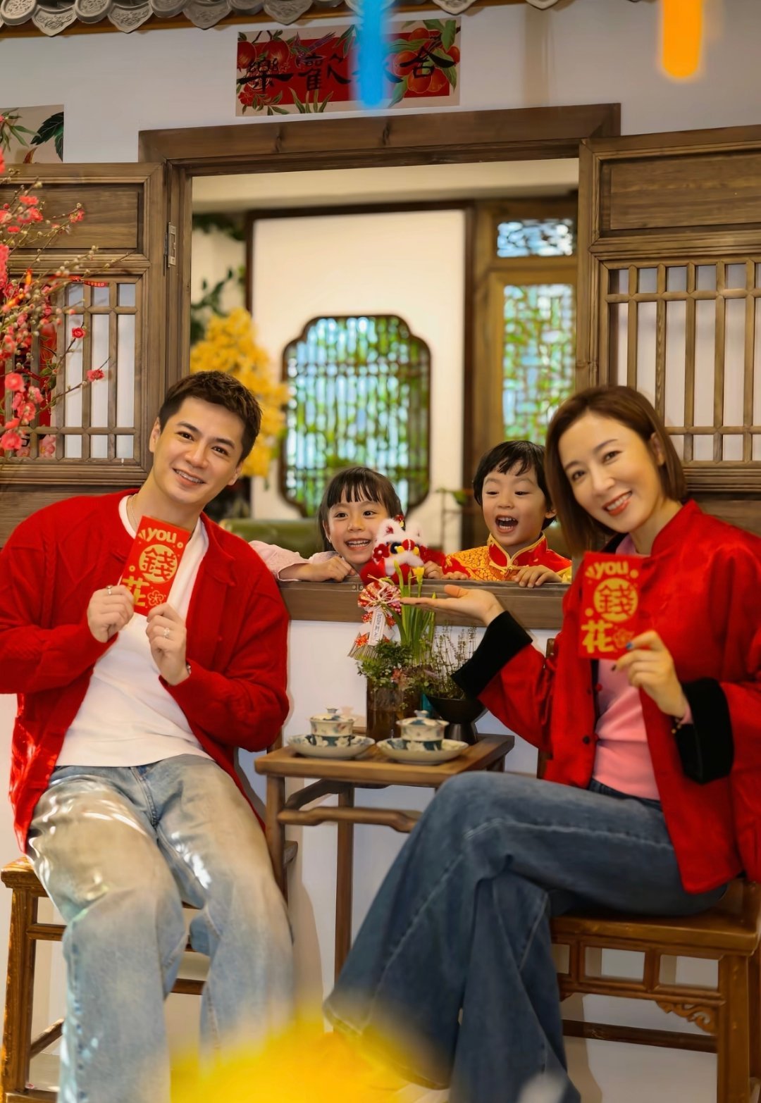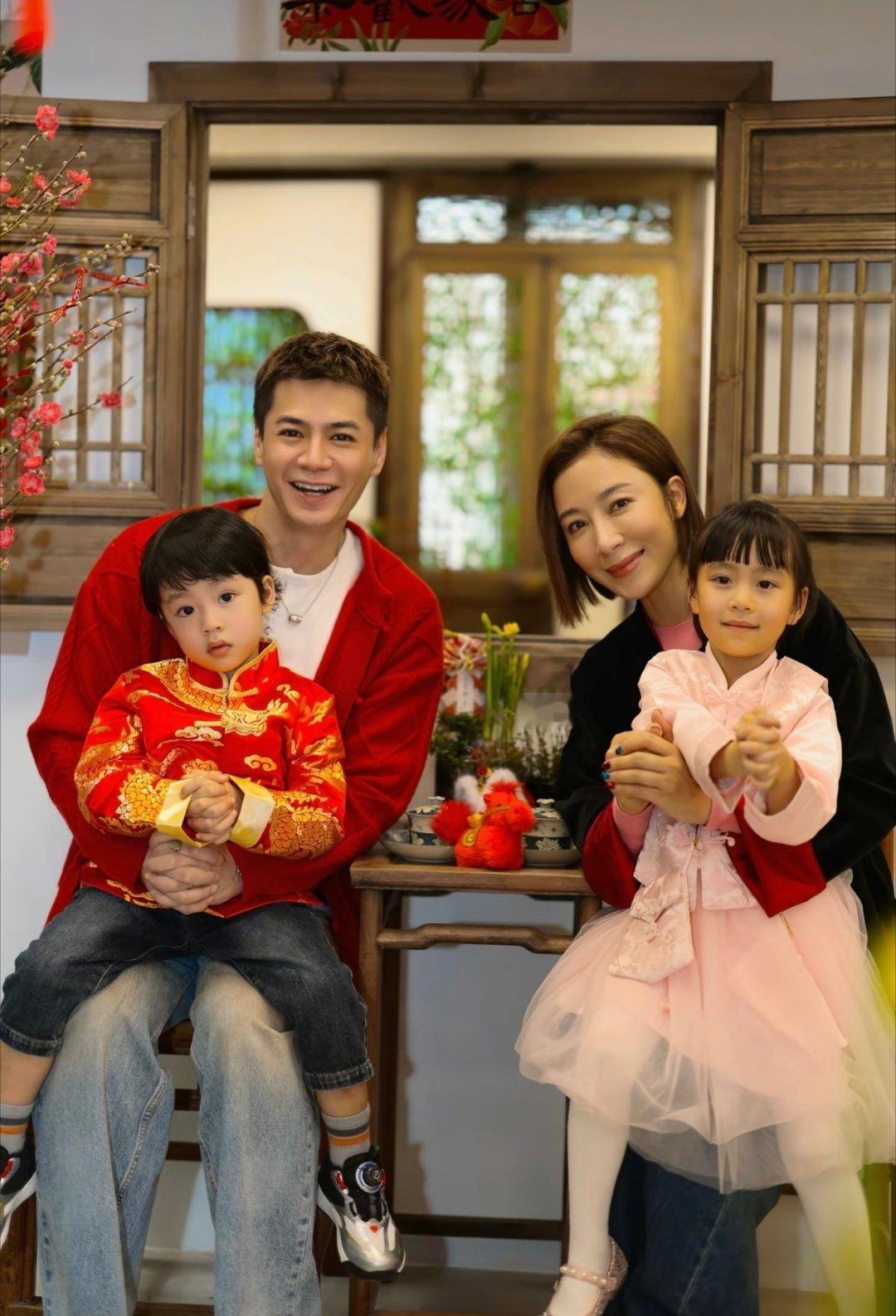 杨怡&罗子溢一家四口的春节写真,高颜值的一家人!