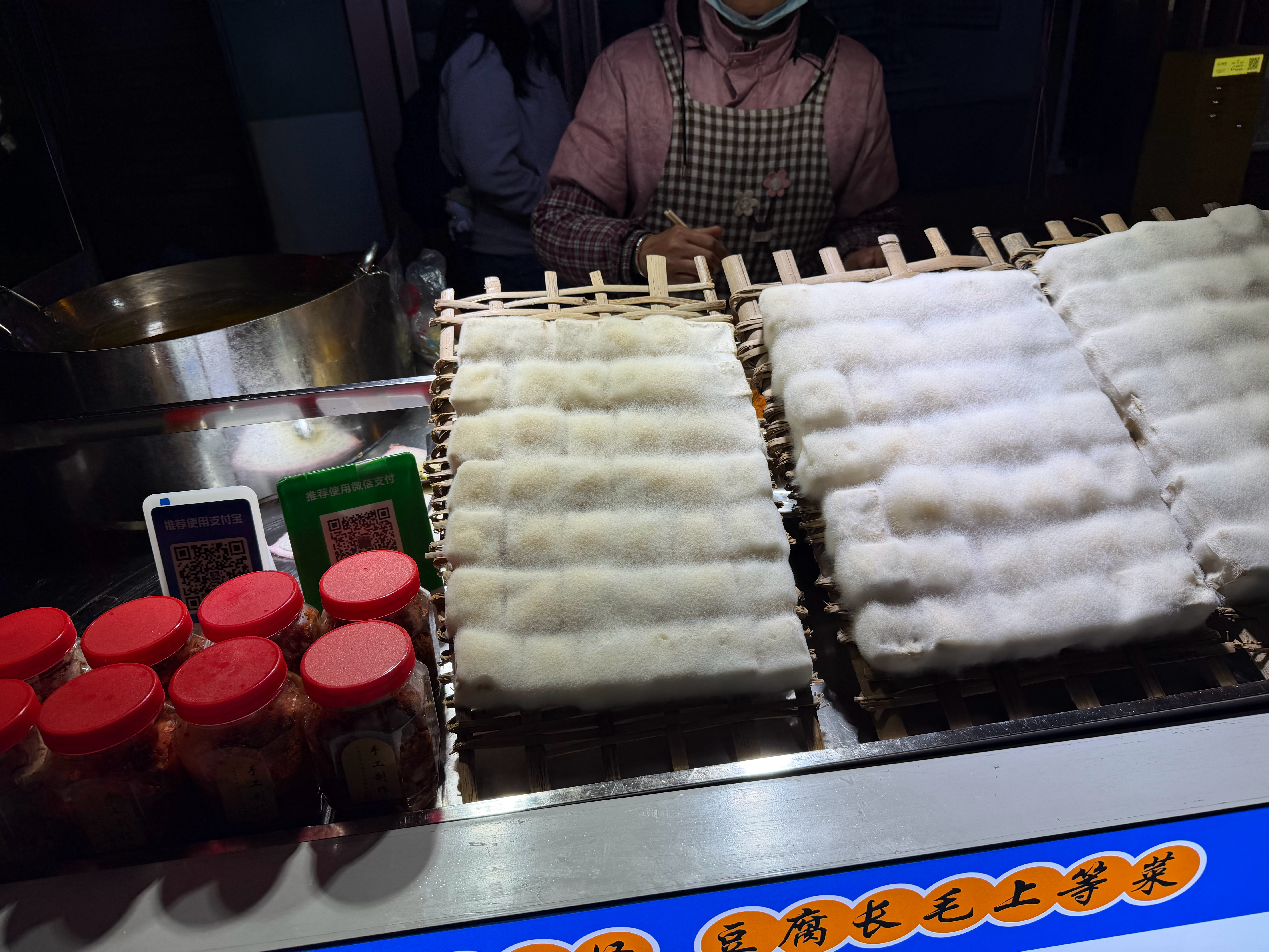 在成都街头,看到最多的摊位竟然是我们安徽的毛豆腐。毛豆腐应该已经实现了完全工业化了,传统毛豆腐是空气自然霉菌,现在工厂应该可以做到批量接种了,除了加工简单,毛豆腐还有一个特点,就是视觉冲击力,晚上远远就能看到白晃晃一片,很是吸引人了。