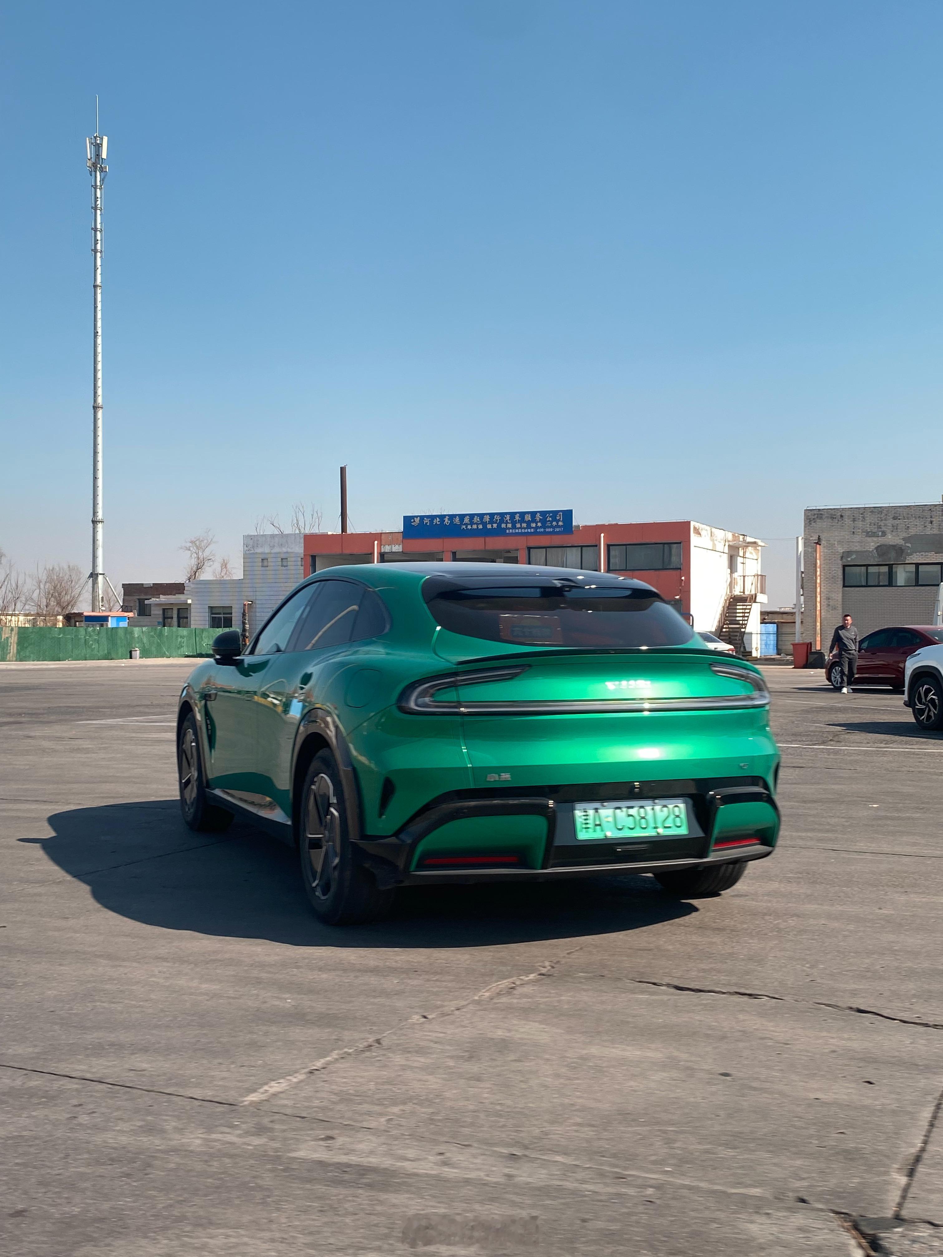 小米YU7,绿色外观,这辨识度没谁了,一眼就认出来了