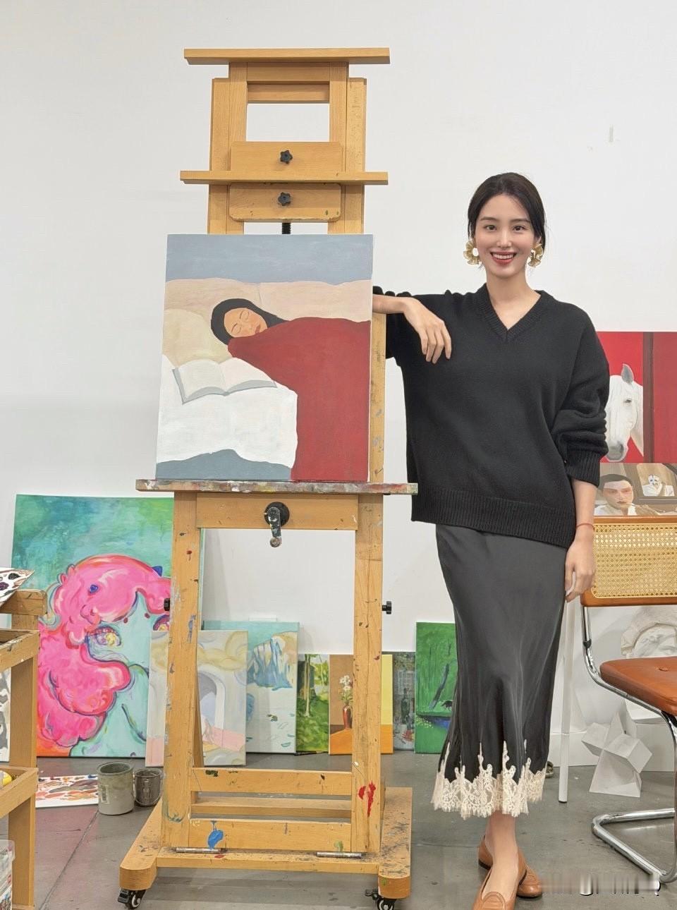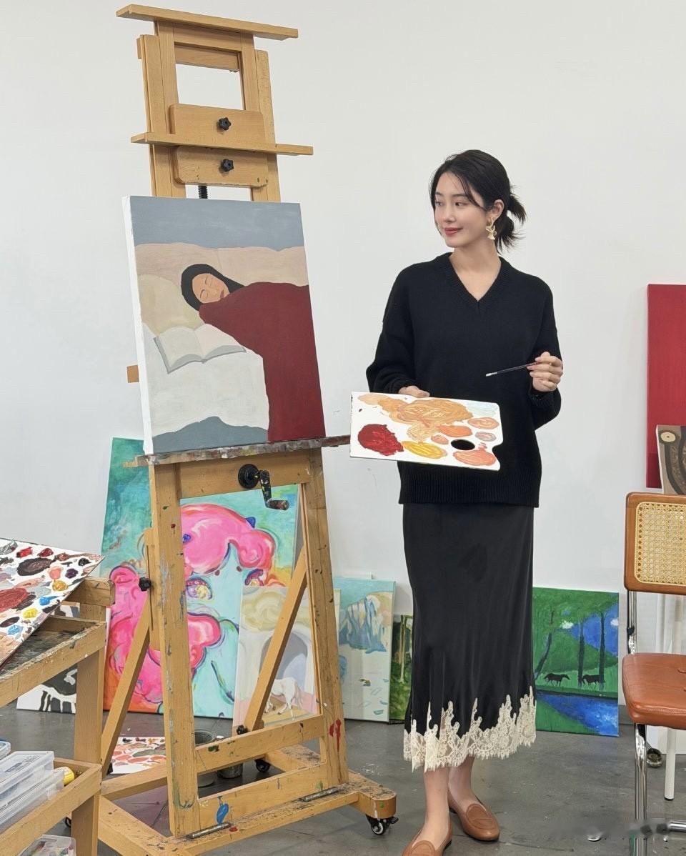 杨采钰在画室作画,一幅画换了三套衣服,这出品速度还真有点慢,不过成品和配色看着很舒服。