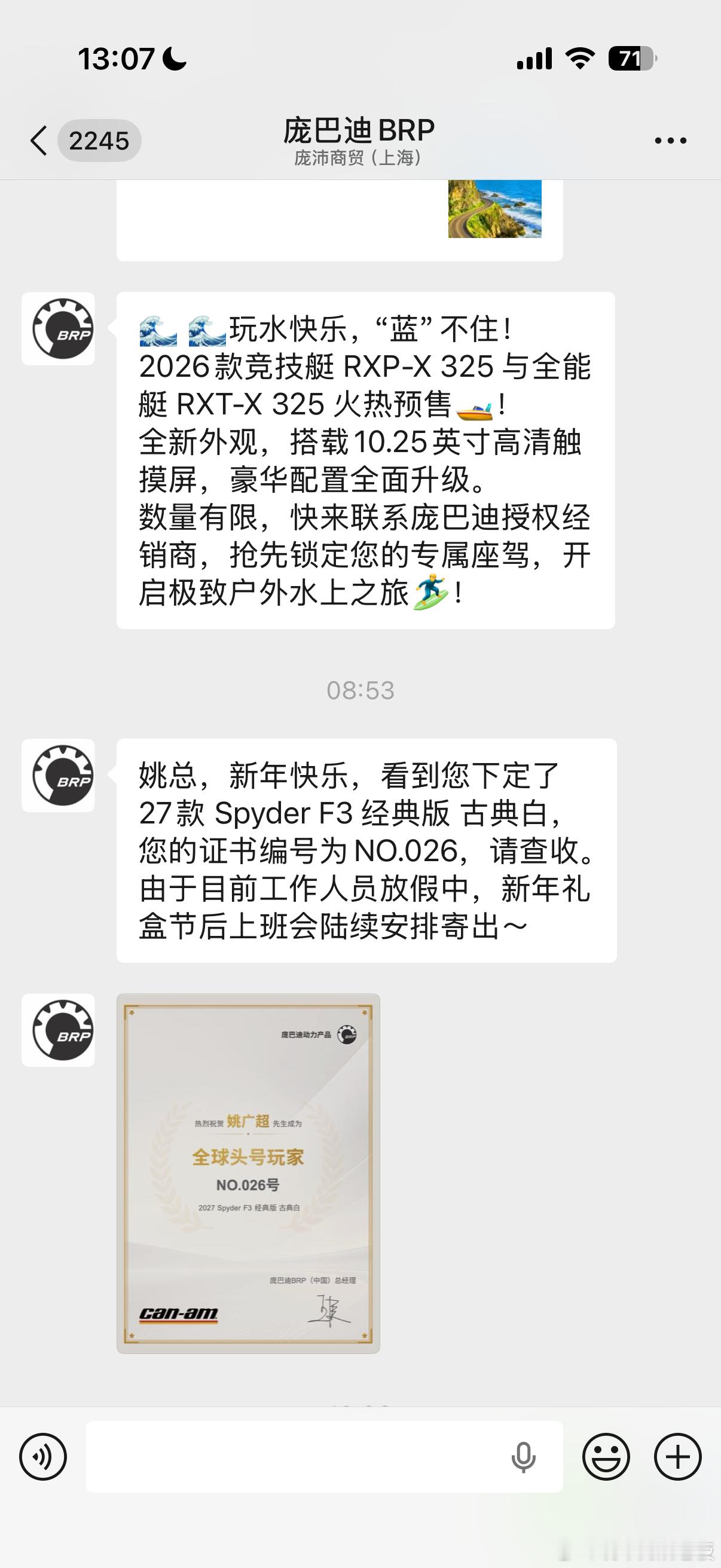 定了台庞巴迪 spyder F3 限量版 编号26号 学习准备骑摩托车去西藏跟姚老板混一天吃9顿 杭州