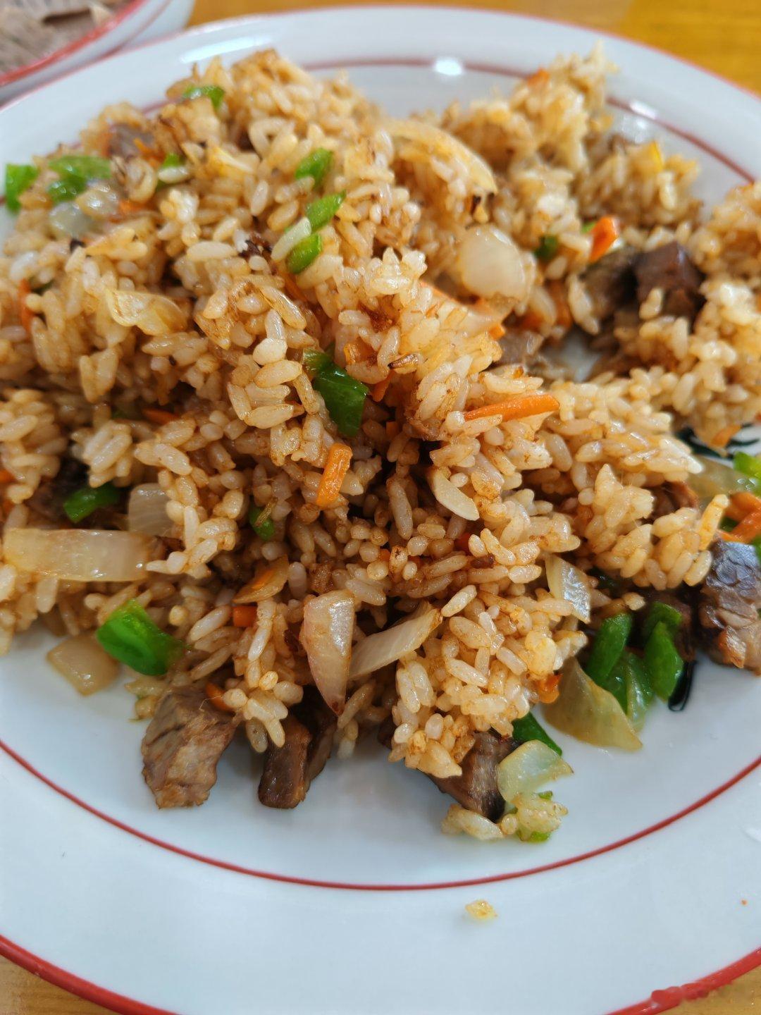 江苏泰兴的物价还是挺便宜的,在兰州拉面点了一份牛肉炒饭只要13块,我另外再加了一份干切牛肉12元。