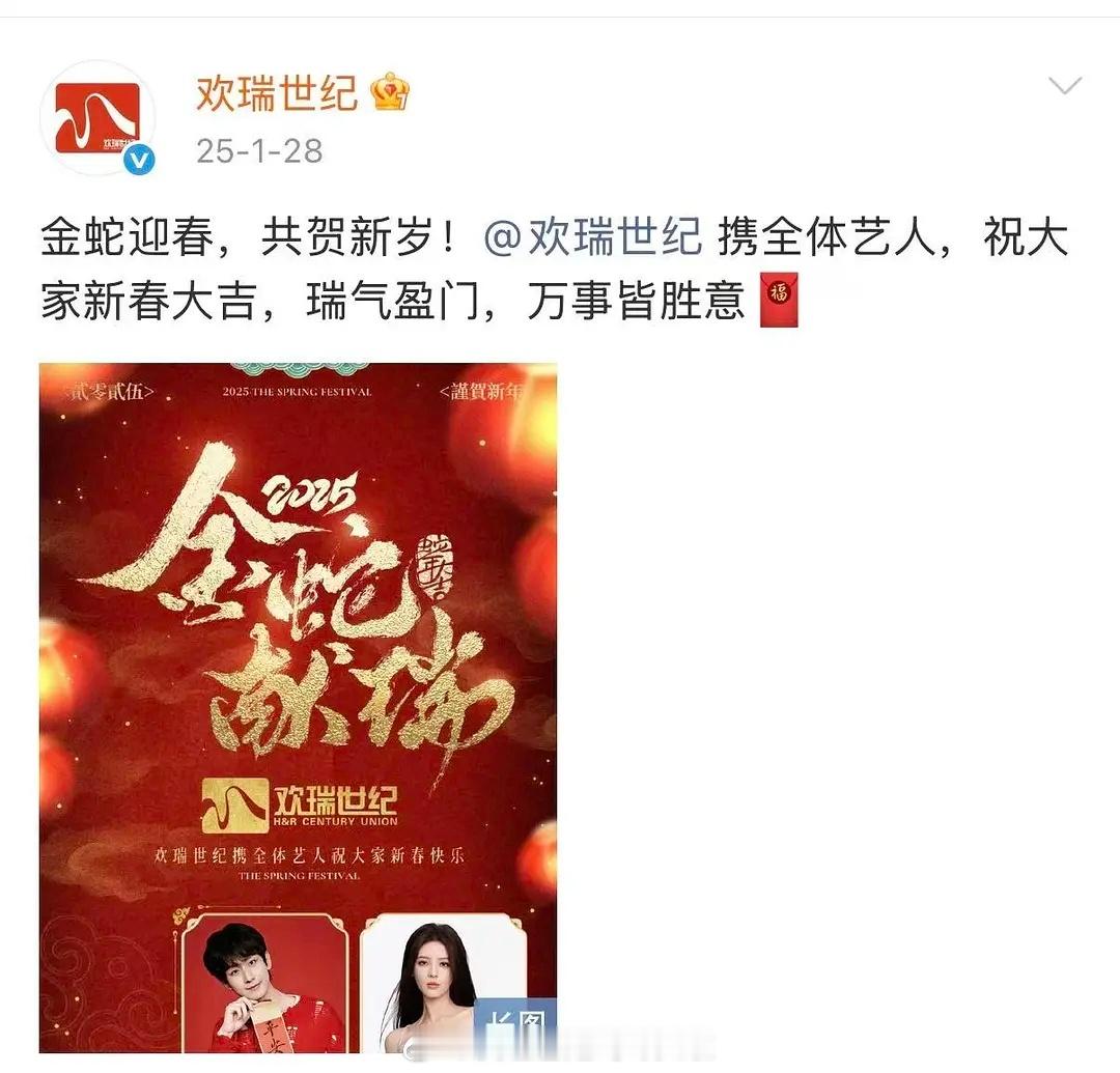 看来成毅真的离开欢瑞了,今年都没有让签约艺人出镜,之前好歹还有任嘉伦成毅撑场面。