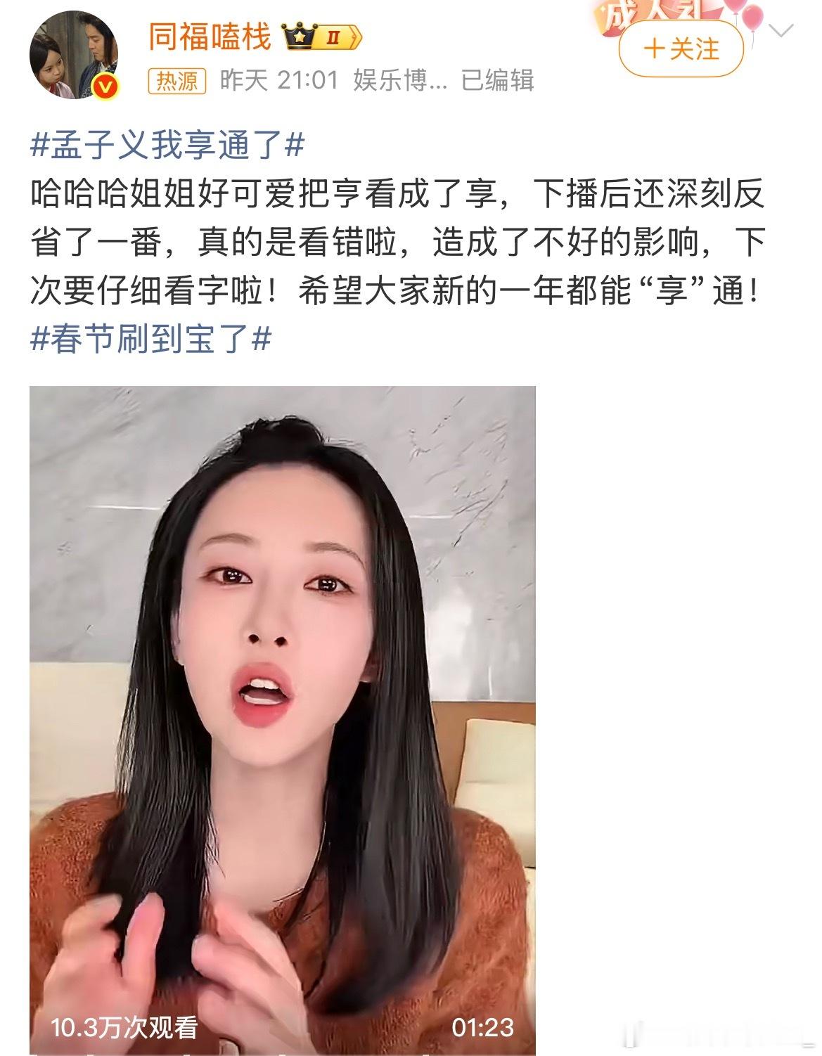 昨晚还特意直播解释一下事业亨通,还有好几条找不到了 主持人谈孟子义直播口误