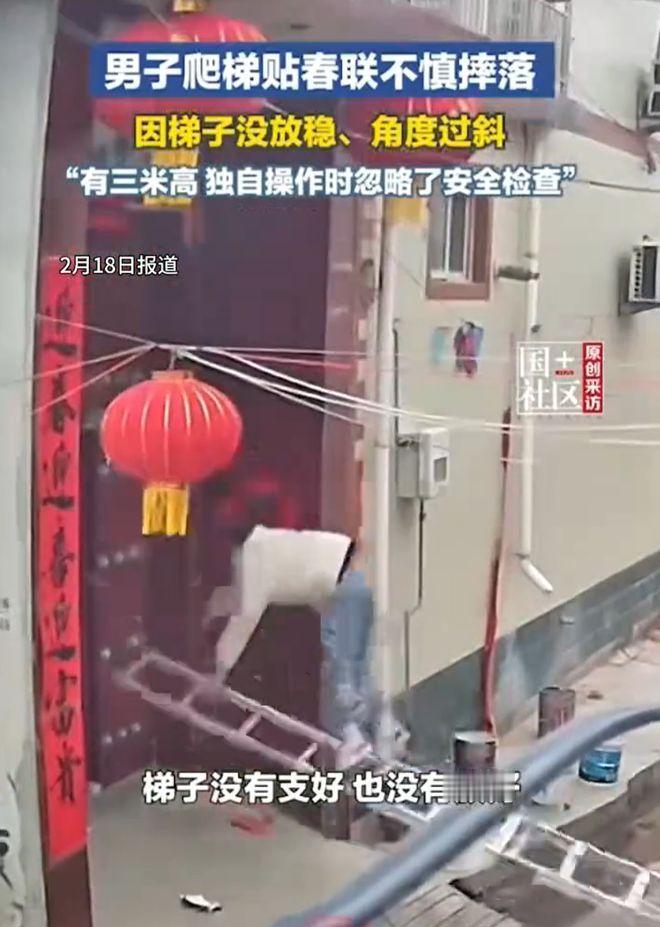 新春佳节隐患多,河北邯郸一男子贴春联不慎摔伤。 (个人观点仅供参考,无任何不良引导) 百密一疏酿祸端,登高作业的疏忽往往藏着致命风险。 该男子倚靠梯子张贴春联。梯子缺乏固定支撑。摆放角度过度倾斜。身体重心瞬间失衡。男子从三米高空径直坠落。地面撞击带来剧烈伤痛。医院检查结果显示腿部骨折。 新年的喜庆氛围被意外打破。长期休养成为生活常态。每周一次的复查拖慢康复脚步。欢乐佳节沦为病床静养。谁能料到贴春联的小事会引来这般麻烦。 安全二字重千钧。一时大意换终身痛苦。佳节行事更需谨小慎微。筑牢防护意识。守住平安底线。方能安心欢度每一个团圆年。