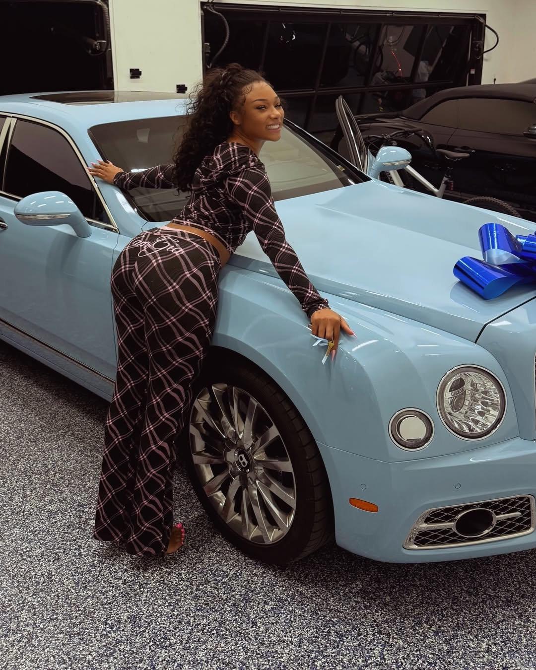 汤普森为女友送上一辆价值27.5万美元的定制婴儿蓝涂装宾利飞驰作为生日礼物。