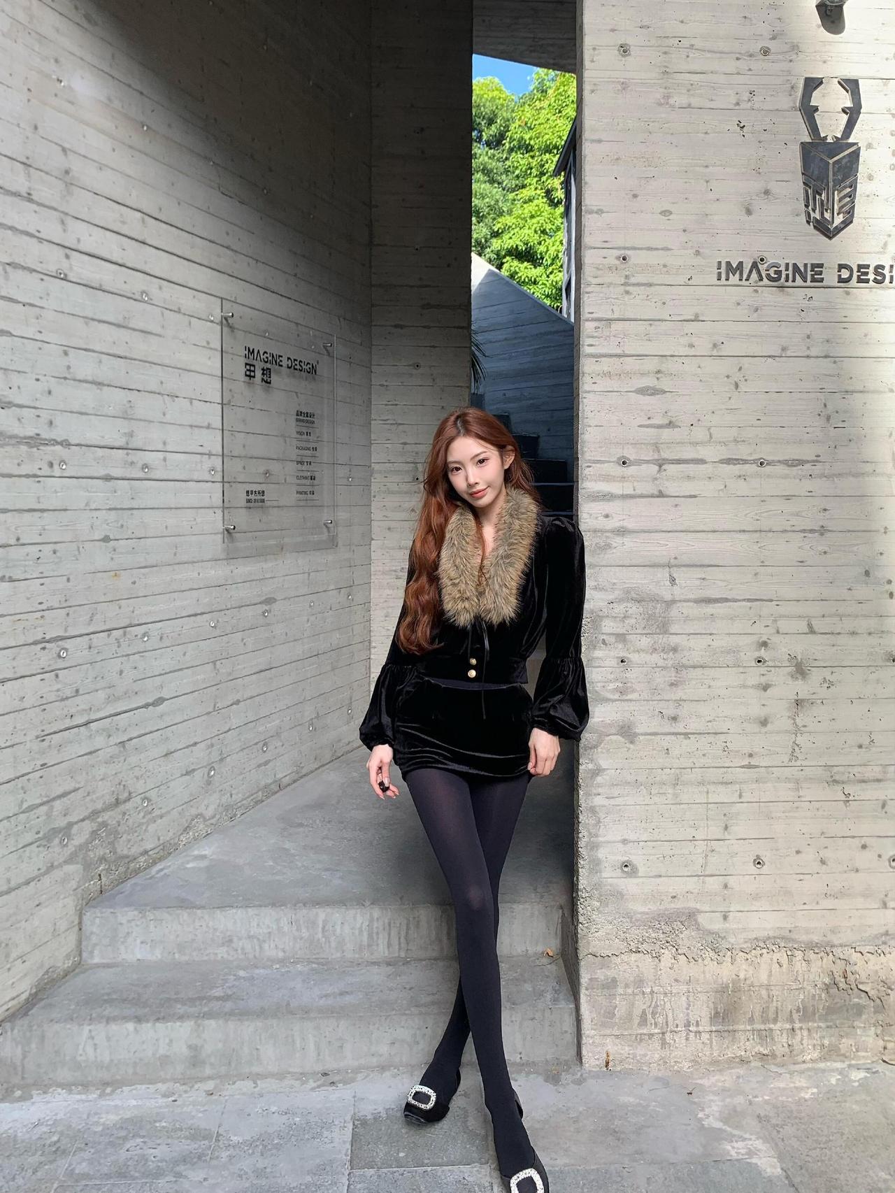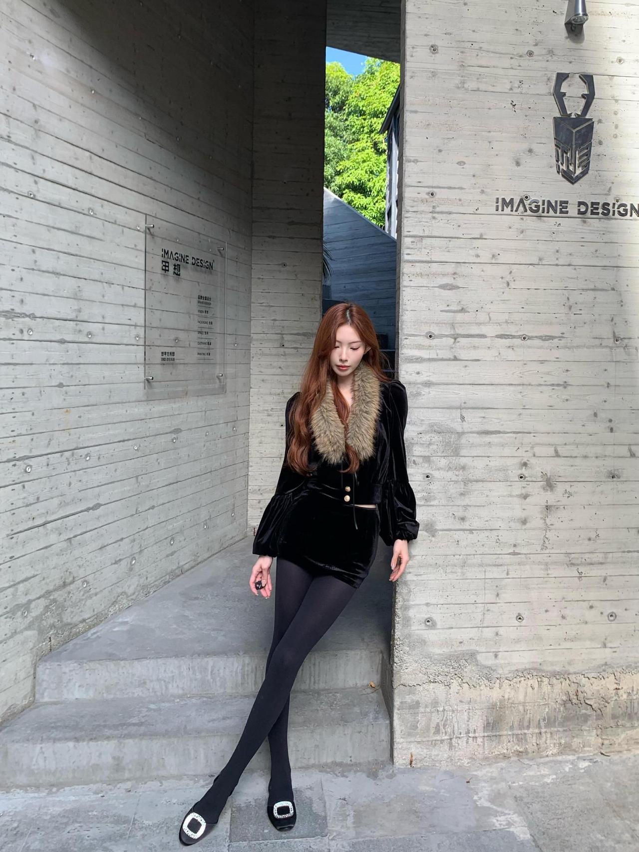 这套穿搭太有“复古贵气辣妹感”了!黑丝绒套装自带华丽质感,毛领点缀添了秋冬温暖感,带钻单鞋又显精致感,又美又飒的风格特别吸睛~黑丝绒穿搭 黑丝绒套装穿搭