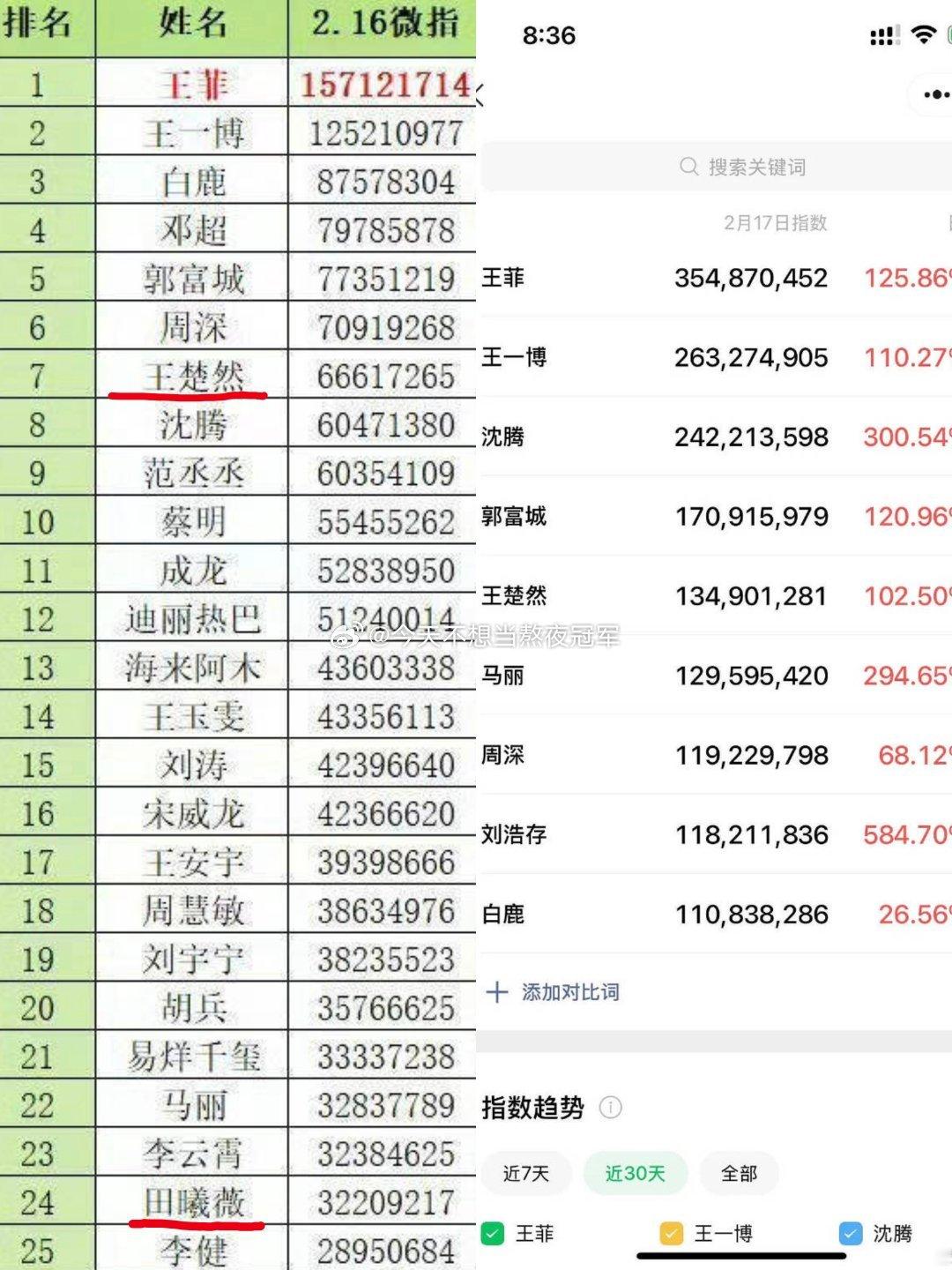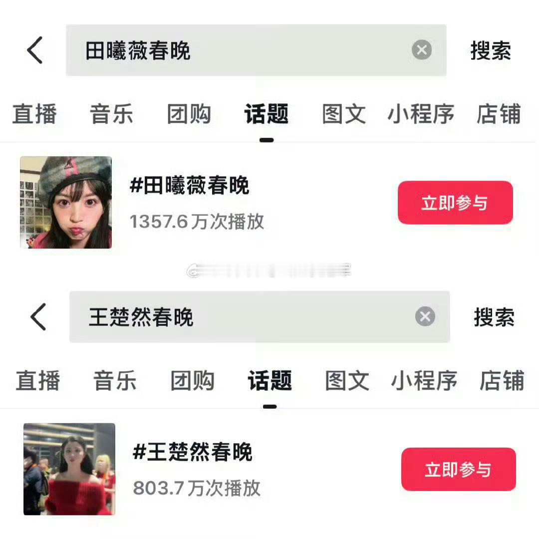 tg. 田曦薇、王楚然 春晚各平台热度🔥