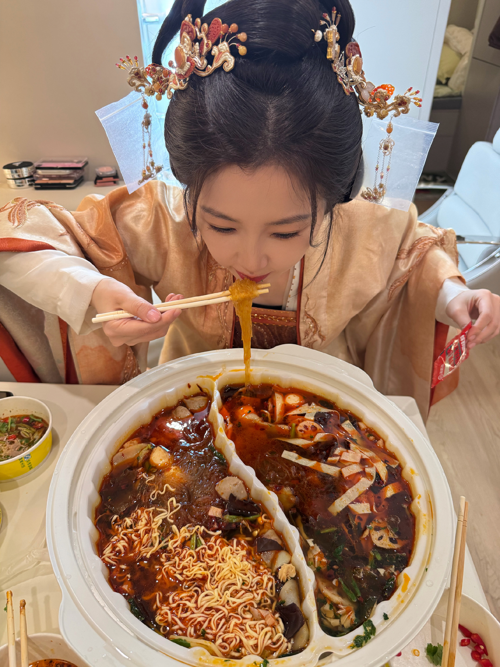 虞书欣云初令剧组吃鸳鸯锅,一整个给我看饿了