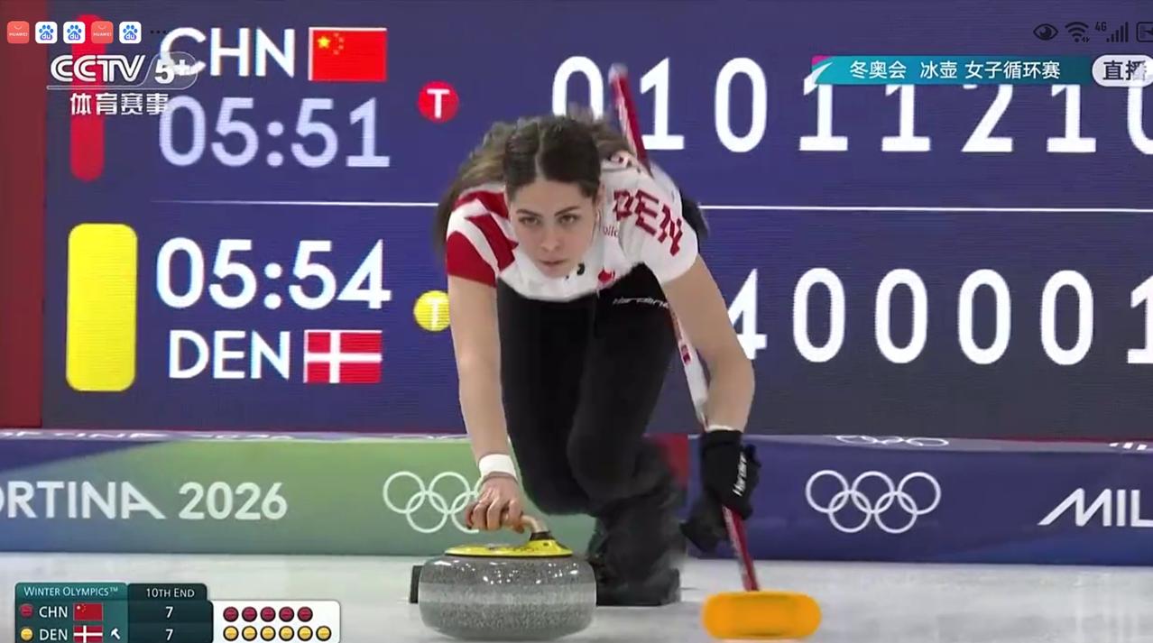 冬奥会冰壶女子循环赛:中国队逆转失败!一分惜败丹麦队遭遇四连败 北京时间2月18日,中国女子冰壶队在意大利米兰冬奥会迎战劲旅丹麦队,丹麦队凭借第三局的出色发挥取得6-1的领先。此后中国队开始追分,凭借第4-7局的出色发挥把比分追到6-6平。第8局丹麦队得到一分,7-6领先,第九局中国队把比分追到7-7平。第10局丹麦队后手,最终丹麦队8-7险胜中国队,中国队遭遇四连败。 在已经结束的比赛中,中国队两胜五负。 2月13日:7-4胜英国队;5-7不敌瑞士队。 2月14日:中国队8-7险胜东道主意大利队。 2月15日:中国队在4-1领先的大好局面下,5-6被美国队逆转绝杀。 2月16日:中国队5-10完败加拿大队。 2月17日:中国队9-10被韩国队绝杀。 2月18日:中国队7-8被丹麦队绝杀。冰壶队 中国女冰壶队