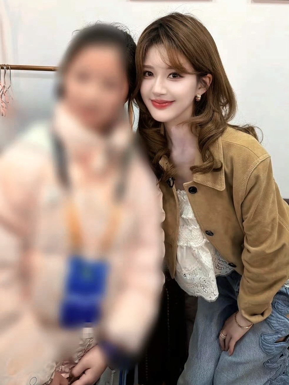 张天爱跟素人合影,胯真的好宽,大宅院似的