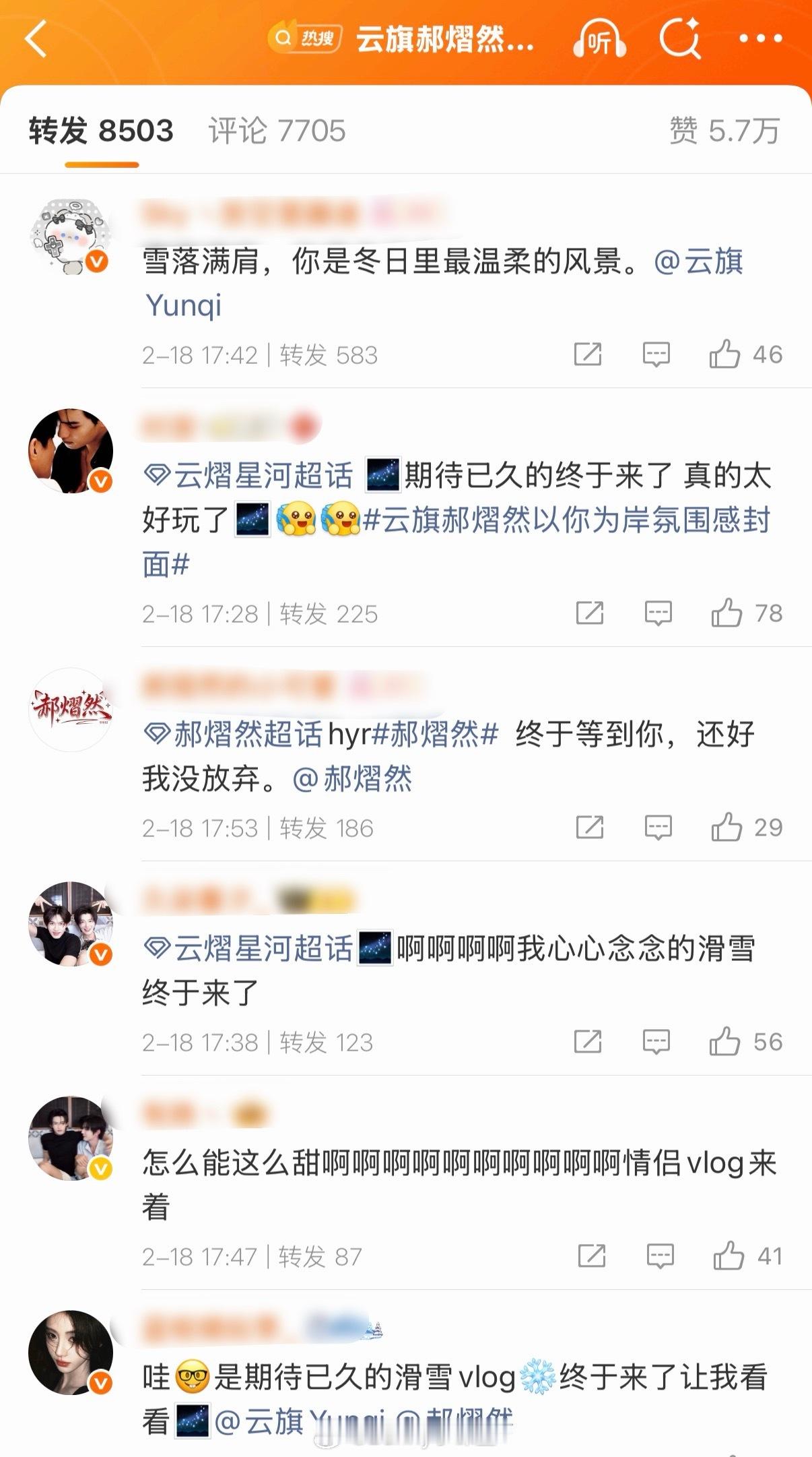 云旗郝熠然滑雪评论区好精彩,云熠星河CP粉美美嗑糖,唯粉只夸自家,还是到了这一步