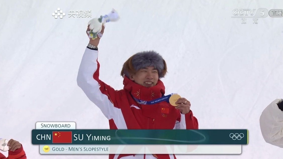 首金终于来了🥇 单板滑雪男子坡面障碍技巧决赛苏翊鸣以82.41分获得冠军 中国