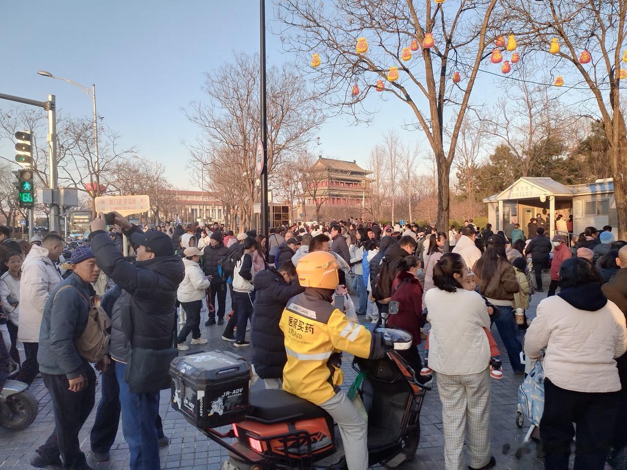 【北斗长弓·话日常】 大年初二的北京,人气直接拉满!上午逛北海公园还挺从容,一到大栅栏、前门大街,直接被人流“劝退”。 我们下午5点坐公交到前门,刚到就遇上限流,人挤人根本走不动。今年春节北京太火了,市属公园单日接待游客50.45万人次,天坛、颐和园、景山最火爆。不出门真不知道,中国人过年的热情有多旺! 说到大栅栏,很多外地朋友容易念错。 千万别按字面读 dà zhà lán,老北京标准读法是:dà shí lànr,必须带儿化音。 这里给大家科普个靠谱的冷知识: 大栅栏原名廊房四条,明代起就繁华热闹。清代为了治安防盗,街巷口设置高大木栅栏,夜里关闭、白天开启,因为栅栏又高又结实,老百姓口口相传,就叫成了“大栅栏”。老北京话吞音变音,慢慢念成 dà shí lànr,一直流传到今天。 下次来北京逛前门,可别再念错啦,一开口就是地道老北京! 北京春节 大年初二 大栅栏读音 北京旅游