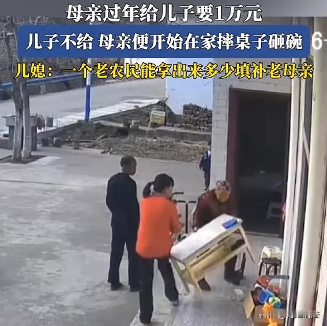 陕西,一男子带着媳妇回老家看望母亲,刚吃完饭老母亲突然脸一黑,伸手问儿子要钱,张口就要1万元。儿子听完惊呆了,说自己就是个老农民,底下还有孙子要抚养,哪里来这么多钱呢?没想到,老母亲气的直接就摔碗、砸盆、甚至还把饭桌搬出去砸的稀巴烂。儿子站一边手足无措,看的令人心酸。 要说在陕西的农村里过年,那可真是充满了年味,氛围也很温馨。 一年忙到头,就想要享受这份其乐融融的时刻。但是张大爷,今年却过了个尴尬年,怎么想都觉得心酸。 张大爷跟媳妇,两个人都是陕西地地道道的农民,跟大地为伴,每年就靠着种植庄稼为生。 想到家里还有个老母亲,张大爷跟媳妇合计:今年咱们都回农村老宅子里过年,跟母亲一起过个团圆年。 为了享受这个暖心的时刻,老婆也放下了手头的琐事,跟丈夫一起,回到农村陪伴母亲过年。 一家人也是忙里忙外,将团圆饭做好了端上桌,要知道,这就是一年到头最温馨的时刻了吧。 谁知道,老母亲突然脸一黑,似乎要开始整活儿了。 老母亲直接就向儿子伸手,并且开始索要:“今年还没给我钱呐,给钱我花花吧。” 看到老妈突然跟自己要钱,张大爷感觉这个时刻,有一些僵持并且难堪。 张大爷就是个农民人,有时候没有农忙,就会帮着人家去干活、上工,根本没有稳定的收入。要说一年到头赚的钱,靠的就是农田的收成,以及打零工赚的钱。 不仅需要维持家中的生计,还需要负担孩子的成长,如今底下还有孙子要抚养,一年到头,张大爷手里没有攒出几个钱。 张大爷心想,可以给个几百上千的,就问老妈要多少。 “10000元啊。”老太太直接就张口要,而且这个数字,看着并不少。 张大爷当时就有些错愕,面对母亲的索要,他跟媳妇都有些蒙圈。 要知道,一万元的数额,放在普通的农民家庭里,可真的不是小数目。张大爷只能坦言说:“这个钱不是小数目,不是自己不肯尽孝,而是现实的经济条件,确实达不到你的要求啊。” 老母亲看到儿子这样说,心里气的很,直接就站起身来,开始摔碗砸盆了。 一桌子的菜,全都被老母亲砸到地上。 桌上的菜砸完了,老人家又当着儿子、儿媳的面,开始砸桌子了。直接就把桌子抱了扔到了门外,瞬间,桌子变成了碎木板。 这些破裂的声音,不仅打破了小院子的宁静,也打碎了儿子儿媳的心。他们站在一旁,很尴尬,也不知道该怎么做。 身为农村的子女,真实处境确实困难,不是不给钱,他们也确实在拼尽全力赡养老人,奈何自己的经济状况就是如此,真的超出了自己的实际情况。 但是老人家对于儿子经济的期待,已经脱离了实际,也忽略了子女背负的生活压力,这就让亲情陷入了金钱矛盾的漩涡。 老人家想要怎样的晚年呢?平时的照顾、生病的照料、逢年过节的陪伴,这些实际的付出,不比大额的钱款更加能温暖老人家的内心吗? 本案释法: 老人家想要过好晚年,儿子也过来照顾了,生病也照顾了,情感也兼顾了,但是老人家非要一万多现金,儿子实在拿不出来,老人家就摔碗砸盆,赡养老人应该怎么兼顾比较好呢? 根据《民典法》第二十六条和《老年人权益保障法》第十四条规定,成年子女对父母负有经济供养、生活照料和精神慰藉三项法定责任。 就是说,子女对于年迈的父母,需要承担经济供养,支付合理的赡养费;生活照料,患病或者失能的时候,可以给出照顾;精神慰藉,如果跟父母分开住,需要经常回家看看。 所以说,张大爷对于老母亲的老年赡养,已经基本可以实现。经济供养,张大爷也经常负担生活费,只不过1万元对于农民汉来说,确实超出了实际。 至于其他,张大爷则经常回家看看老母亲,母亲需要照顾的时候,他也会准时出现,并且给与关怀。整体来说,张大爷赡养母亲,做的非常尽责了。 逢年过节,经常给老人点钱,填补一些,也是应该的。不过一下子要10000元,不做准备的,确实还真拿不出来。 对此,大家都怎么看呢?