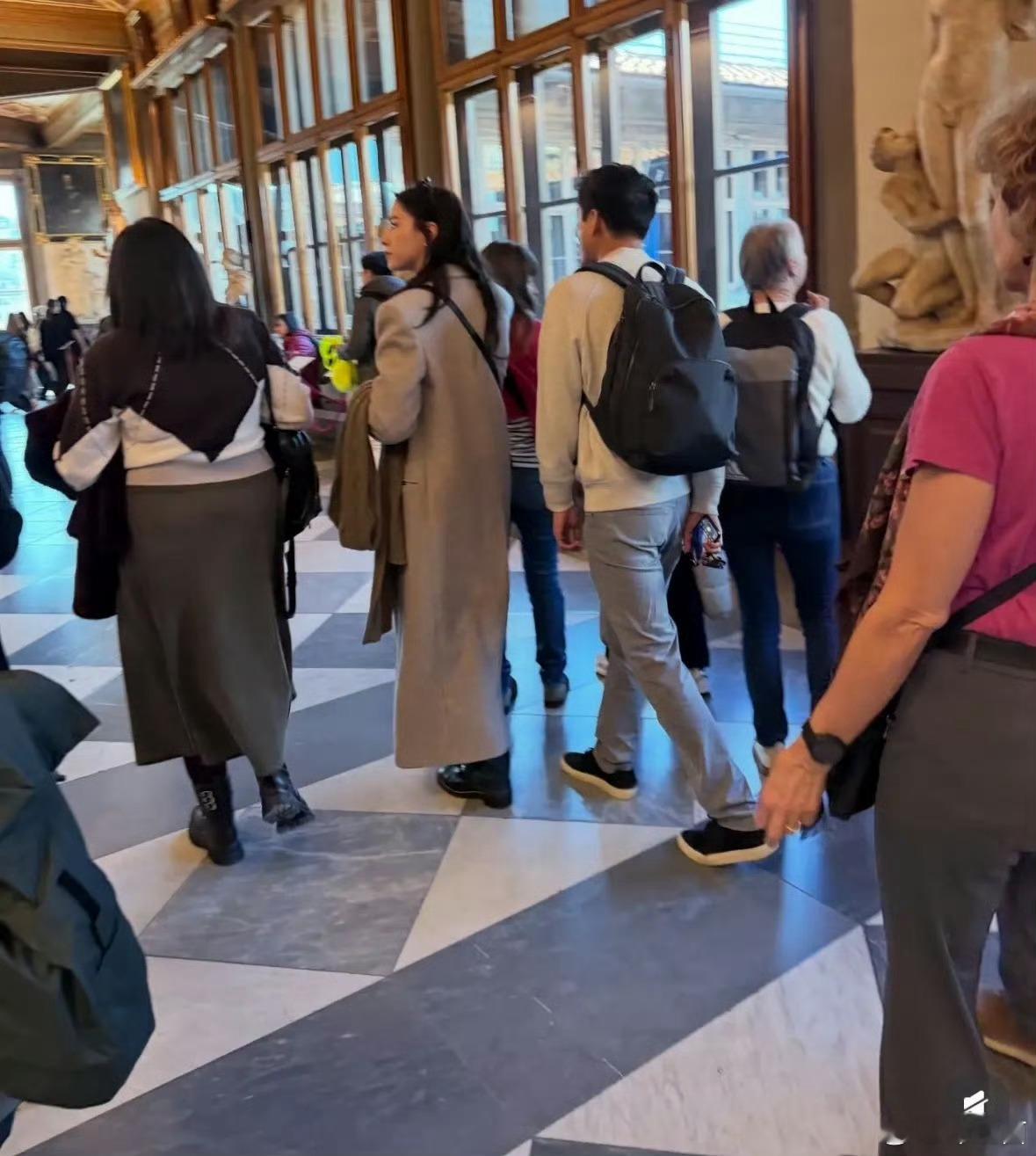 张天爱跟素人合影,胯真的好宽,大宅院似的