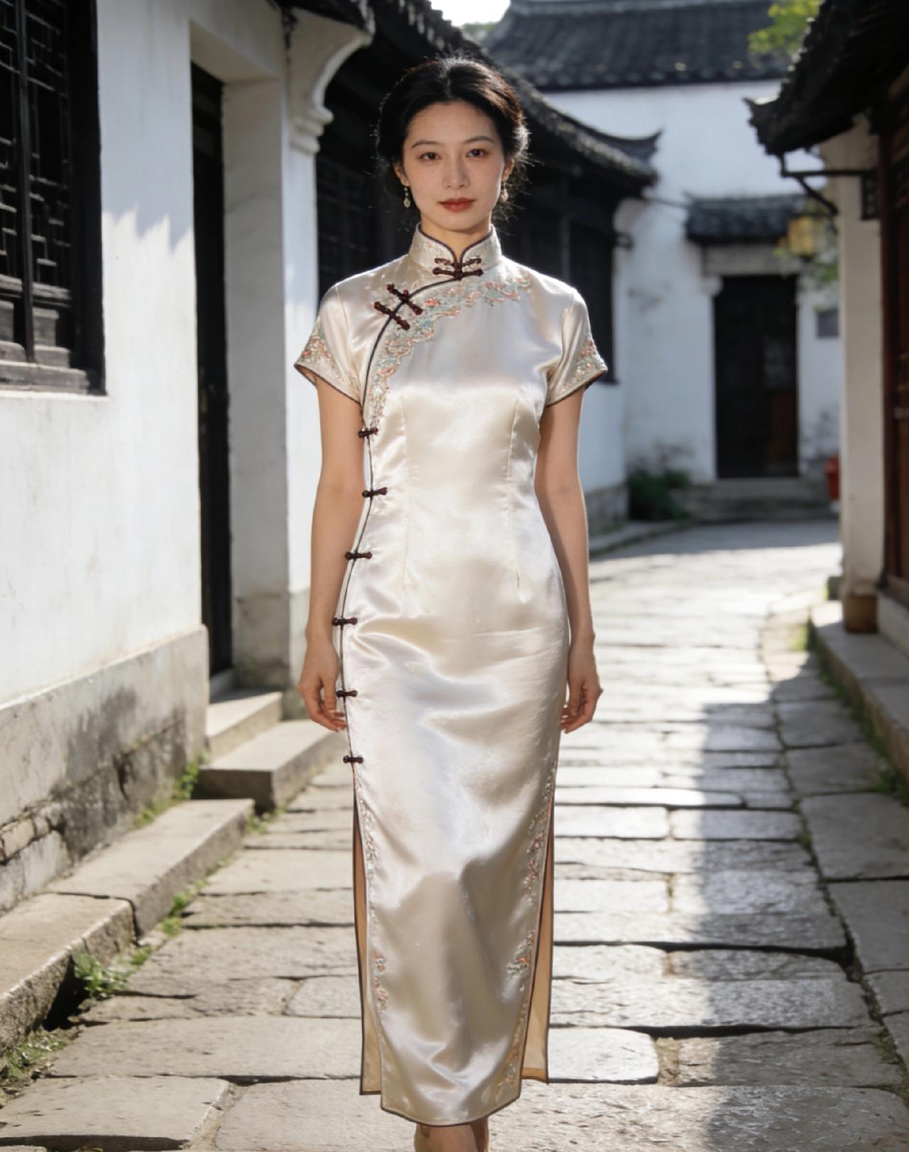 一袭旗袍,染就一树芳华,两袖月光,诉说绝世风雅。身着旗袍立于江南山水间,玲珑曲线被温柔勾勒,盘扣藏韵,裙摆摇曳,一步一履皆是温婉。古典韵味与现代美感相融,眉眼含情,身姿优雅,将东方女子的含蓄、柔美与端庄尽显无遗。旗袍不仅是服饰,更是刻在骨子里的东方美学,随手一拍便是诗意画卷,每一帧都美得惊艳时光,尽显独属于中国女性的温婉与大气。