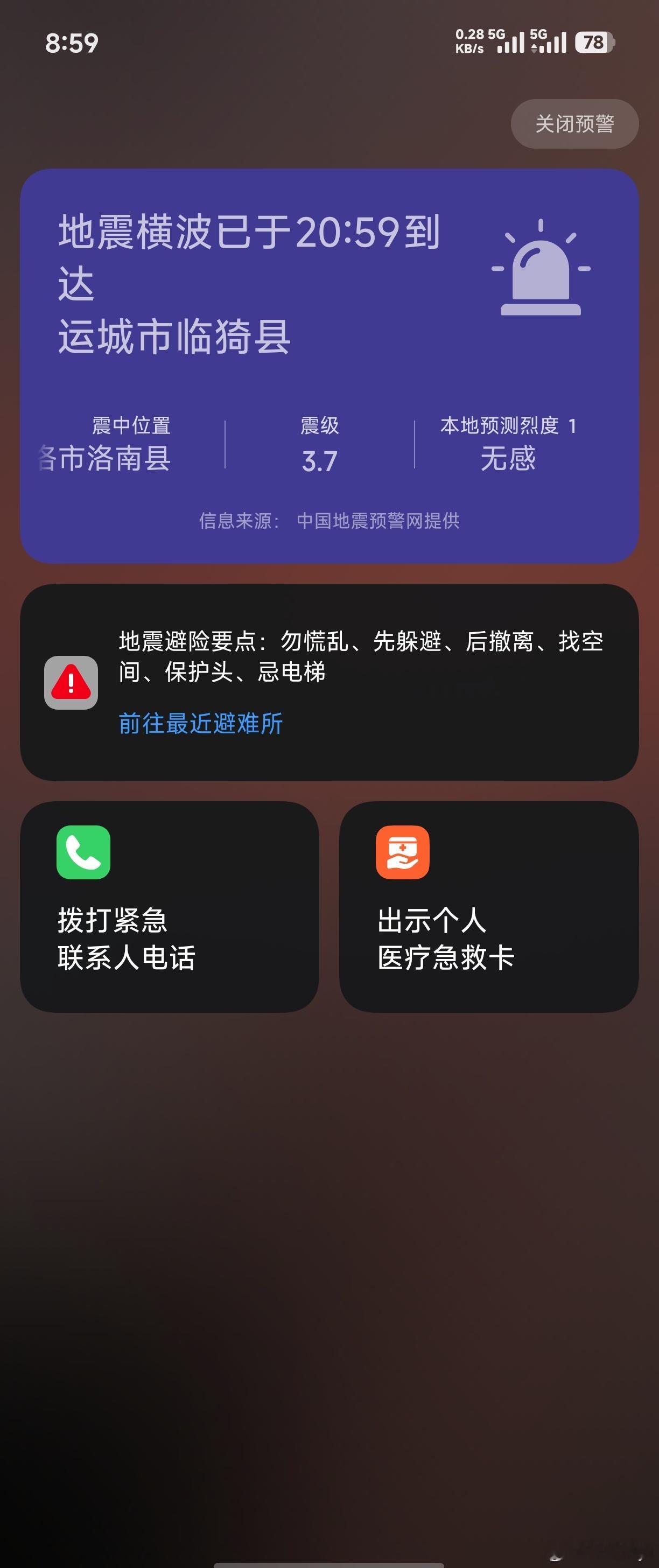 吓我一跳,第一次收到地震预警,震动+声音提醒
