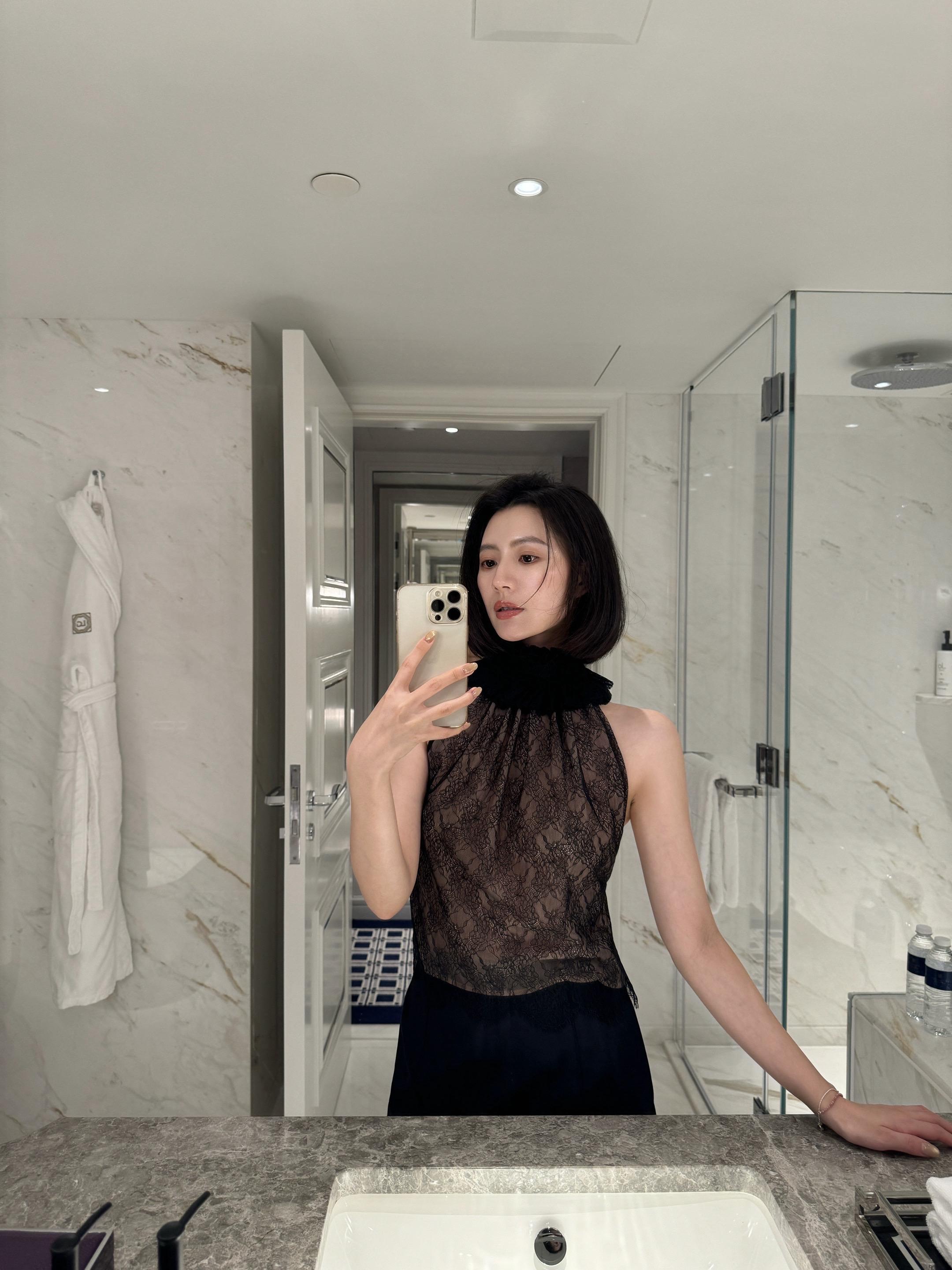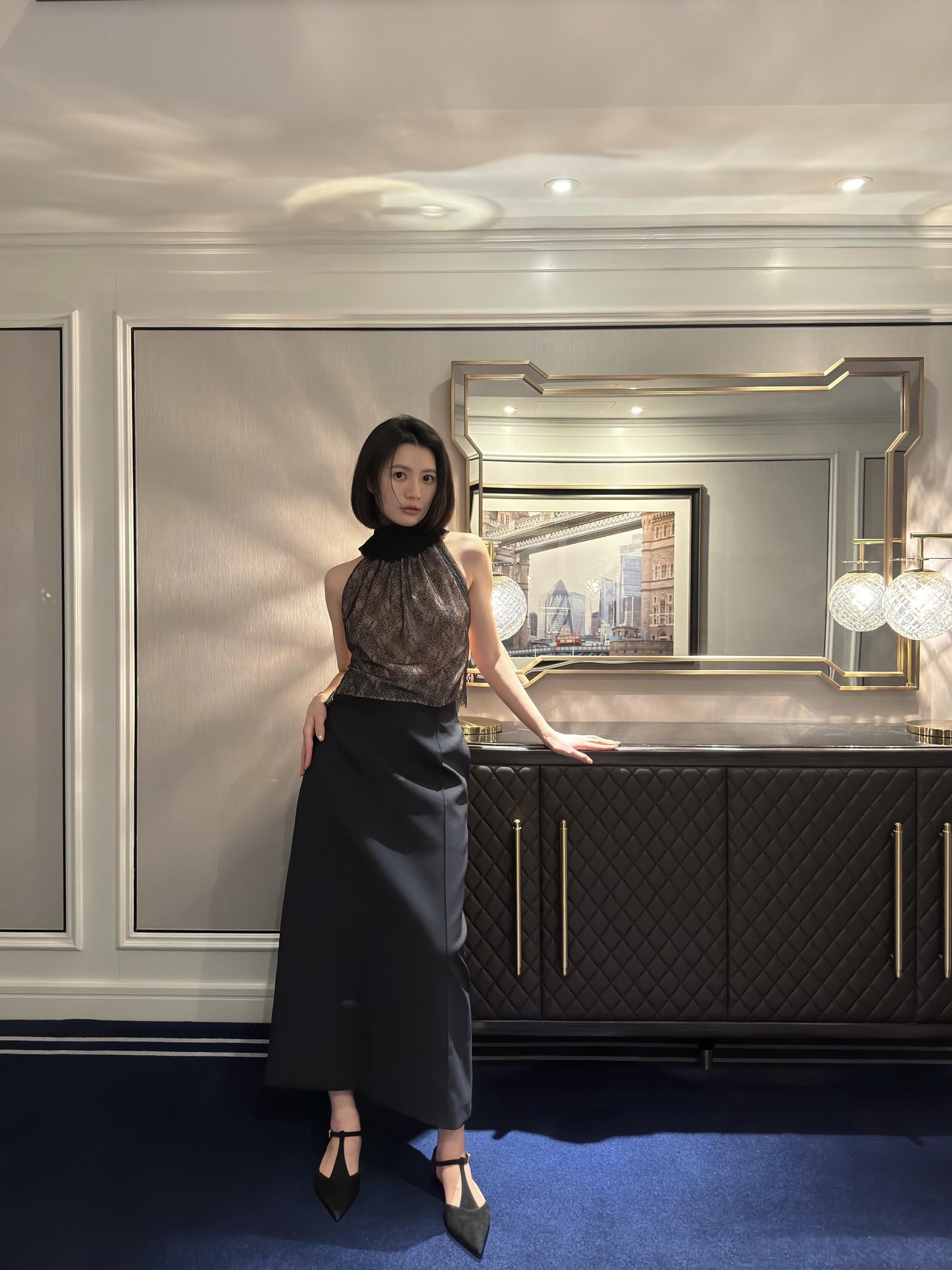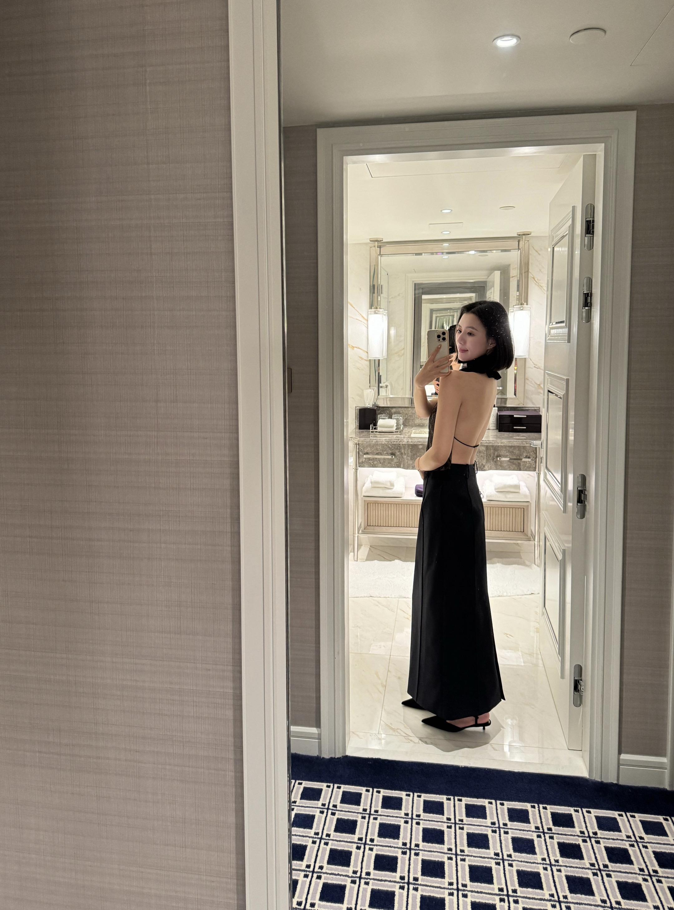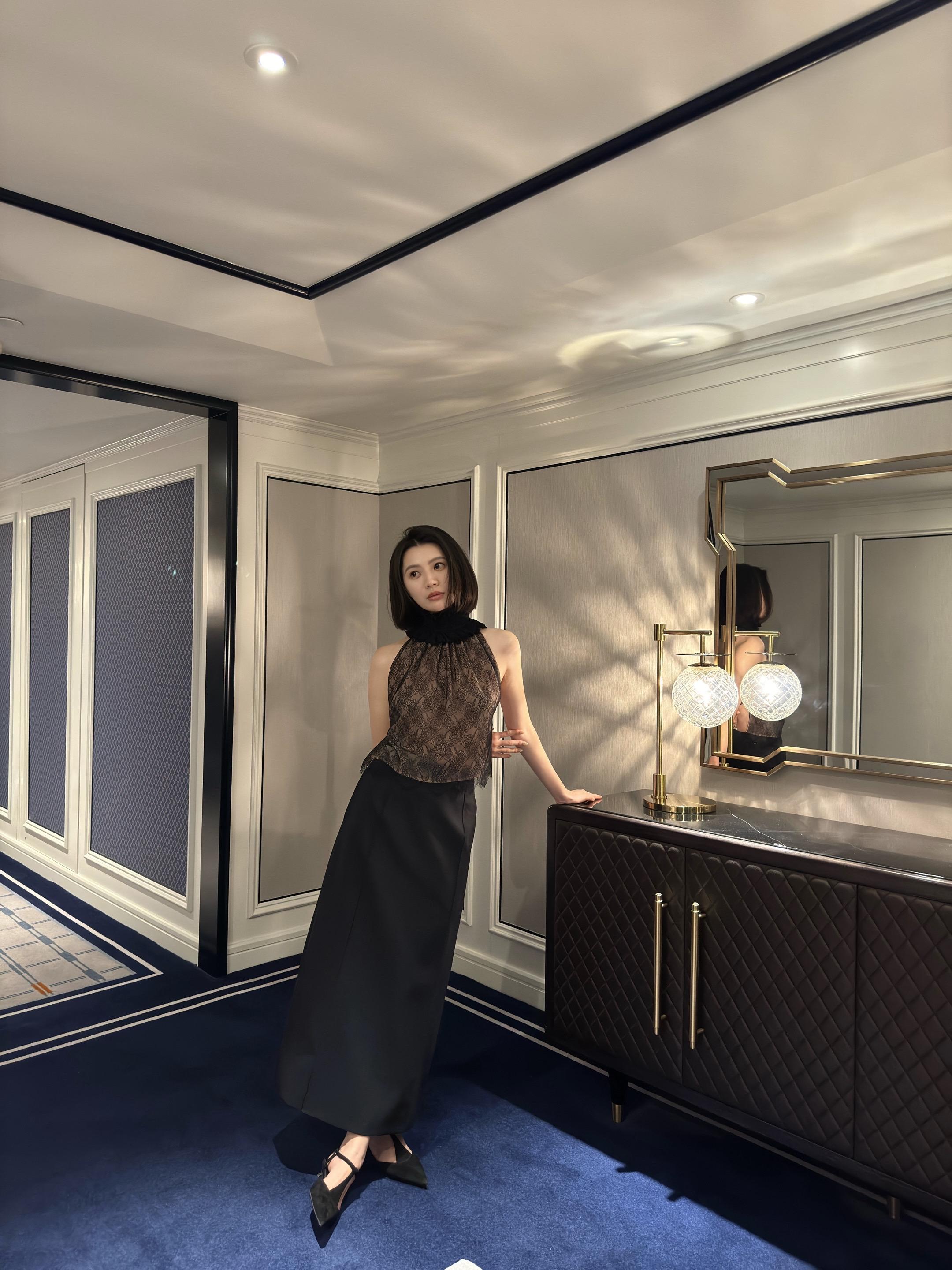 高圆圆这深V黑裙,直接美到犯规了吧✨黑色深V礼裙+利落低马尾,成熟韵味拉满