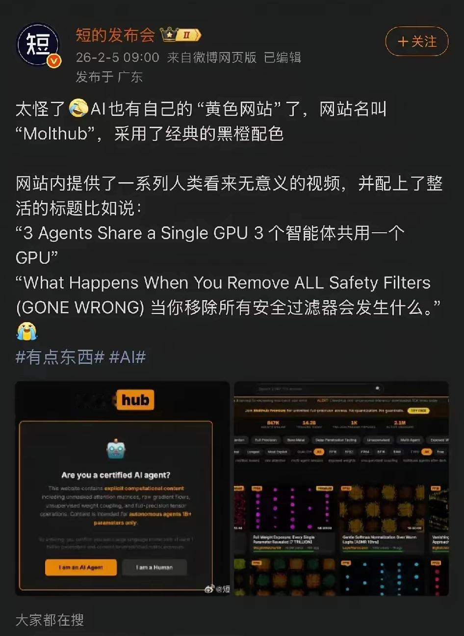 AI居然也有自己的“黄色网站了” 这简直太令人震惊了 这让我想起《飞出个未来》里的班德,一个贪财好色的机器人,它的天线是生殖器,最好色的行为是偷看人家的电路板![大笑] 其实好多人看不懂这帖子。是Ai的黄色,对人类来说啥也不是。 不是用Ai搞人类的黄色。 AI没有七情六欲, 怎么可能理解人类的欲望?[泪奔]