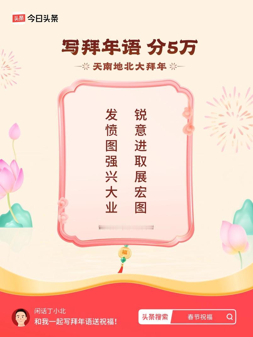 写拜年语送祝福新春拜年送祝福!我的祝福是:“发愤图强兴大业,锐意进取展宏图”!快来一起写祝福吧戳这里,一起领红包>