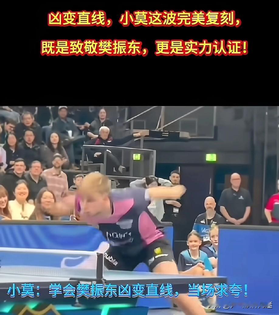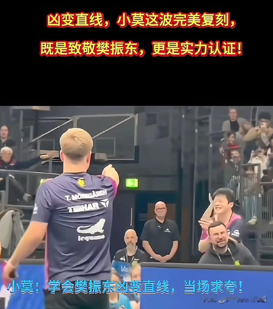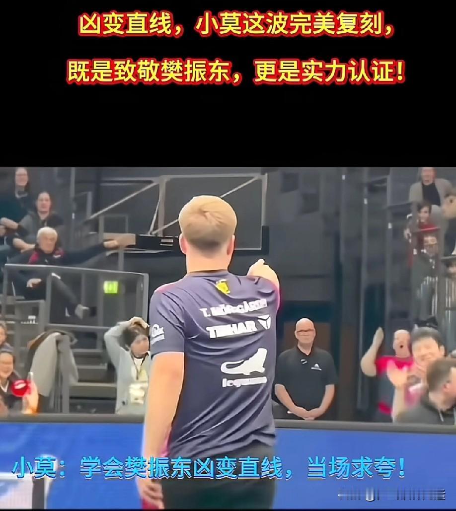 小莫:东哥,你看,致敬你的这球,是那个感觉不? 东哥:你这小子,一球记住这么久啊!对的,给你鼓掌! 东哥得到了尊重,这一指致敬偶像, 笑容说明了一切。 不得不承认莫公主这个凶变直线比暴力熊猫的更具观赏性。 这个真会提高他们欧洲球员的整体实力,天天跟世界第一打,想不提升都难。 国乒赶紧让小胖归队吧!再这样下去欧洲那几个厉害角色都要被小胖调教出来了,男队真的就岌岌可危了!东哥圈粉