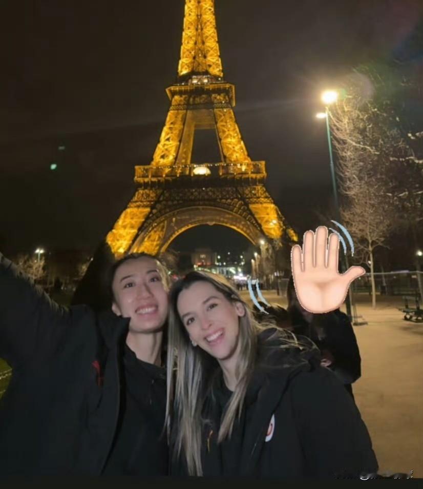 王媛媛随加拉塔萨雷打欧联杯1/4决赛首回合,在球队1-2落后时替补登场救火,打了后两局,贡献9分,8扣5中1失误0被拦 4拦,赢球后和卡鲁塔苏到埃菲尔铁塔下面合影留念!
