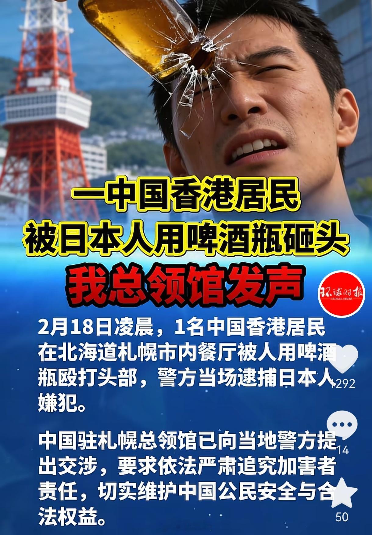 一中国香港居民在日本北海道餐厅遭啤酒瓶爆头,日警方当场逮捕了袭击者。看到这里,大家都能知道肯定是双方因矛盾起争执,日本警方抓的也挺及时,可是,打人者已经被日本网民捧为“英雄”!这就是目前日本仇华的整体氛围!再问一句,上次抢劫香港人的案子破了吗?