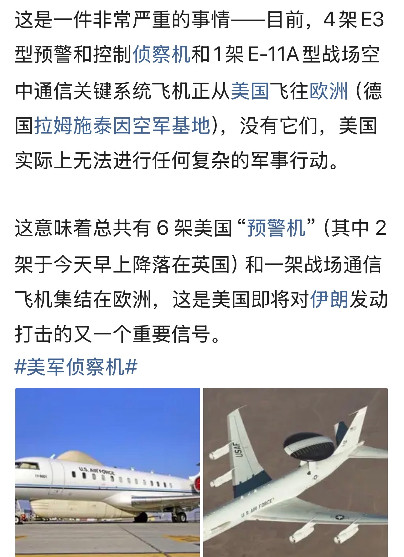 【#美国将在中东举行空军战备演习#】据央视新闻消息,负责中东地区美军行动的美军