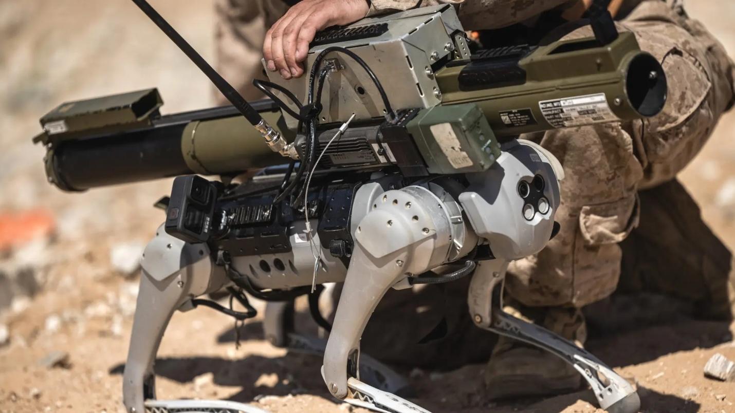 美国海军陆战队买来给上峰演示武装机器狗协同作战的机器狗,和上春晚表演蹬墙后空翻的机器人,是同一家出品的。