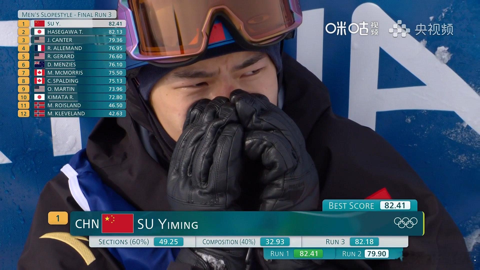 苏翊鸣第三跳后哭了 苏翊鸣第三滑82.18分