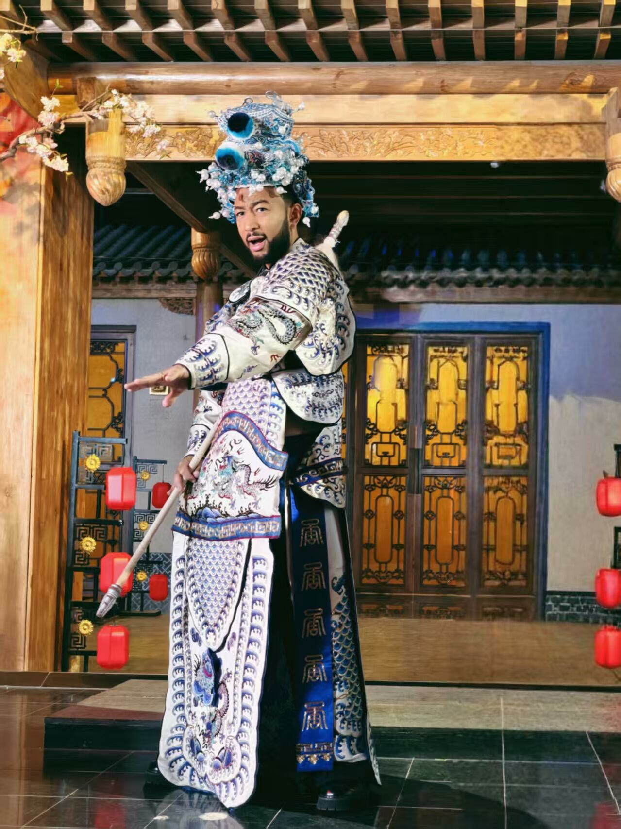 在春晚上大放异彩的传奇哥John Legend分享在北京新照!还体验了一把京剧文化!!!