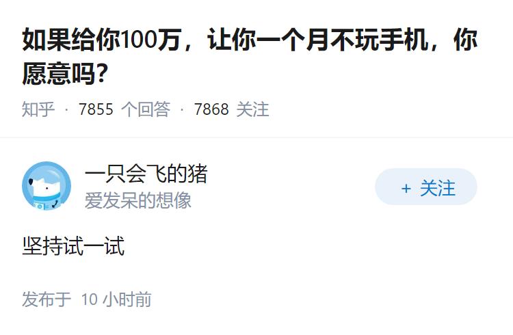 如果给你100万,让你一个月不玩手机,你愿意吗?
