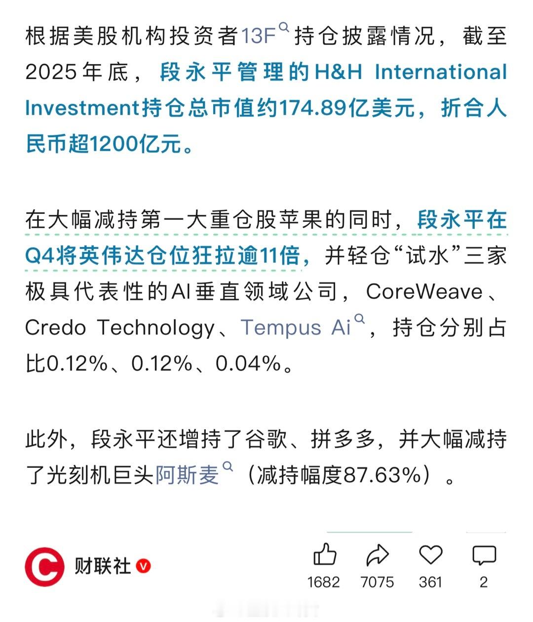 段永平1200亿元持仓曝光