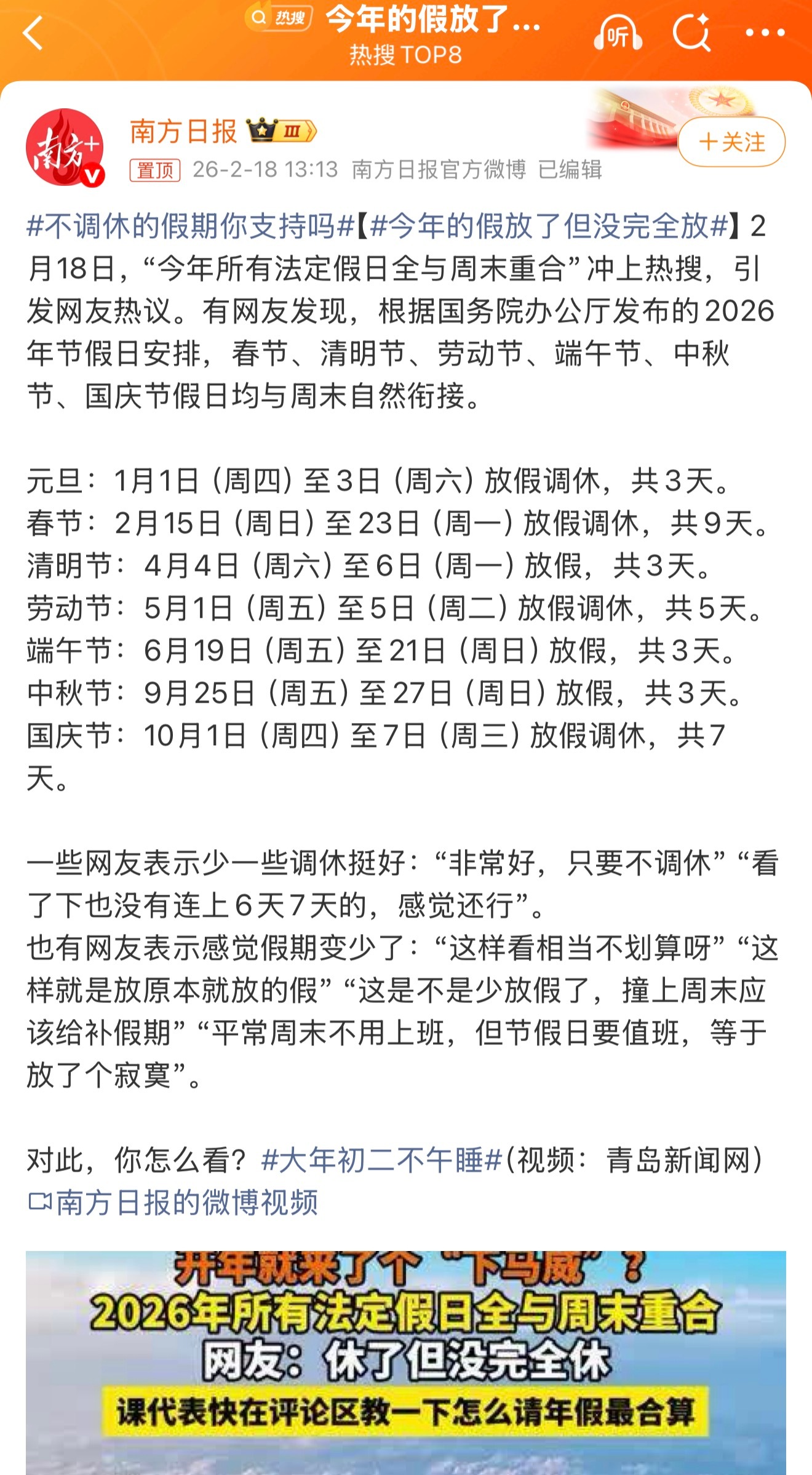 今年的假放了但没完全放不调休不挺好的吗,总感觉调休会乱糟糟的,尤其是iPhone用户,闹钟还得单独设置,麻烦。