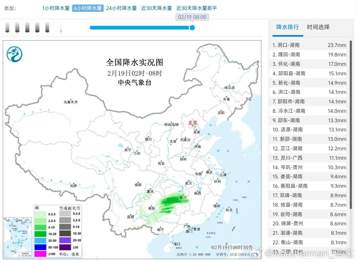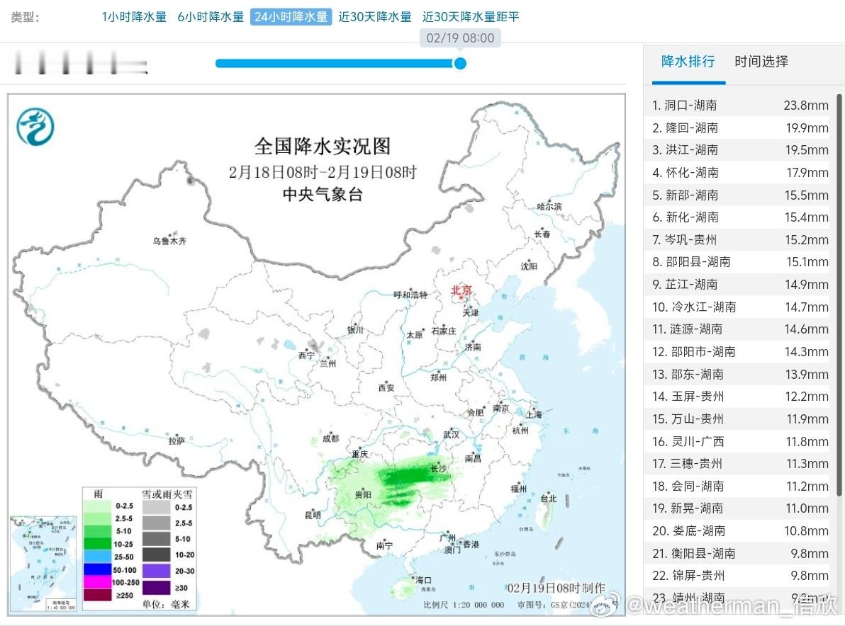 【降水】昨天到今晨,贵州湖南降雨发展增多,湖南部分站点出现中雨。湖南的降雨主要就是今天凌晨发展起来的。今天白天降雨向东伸展,总体强度减弱。新疆北部今天到明晨降雪增多,阿勒泰北部有大雪-暴雪。明后两天,新疆北部还有降雪。但南方大部地区是没有降水,晴天居多。