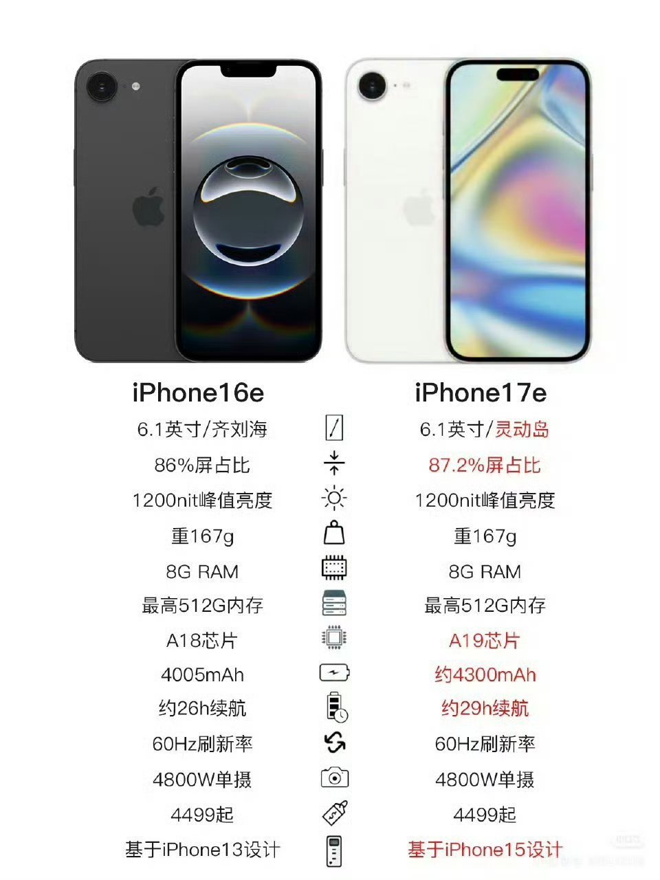 iPhone17e或将今日发布A19芯片,60Hz刷新率,4800w主摄,灵动岛