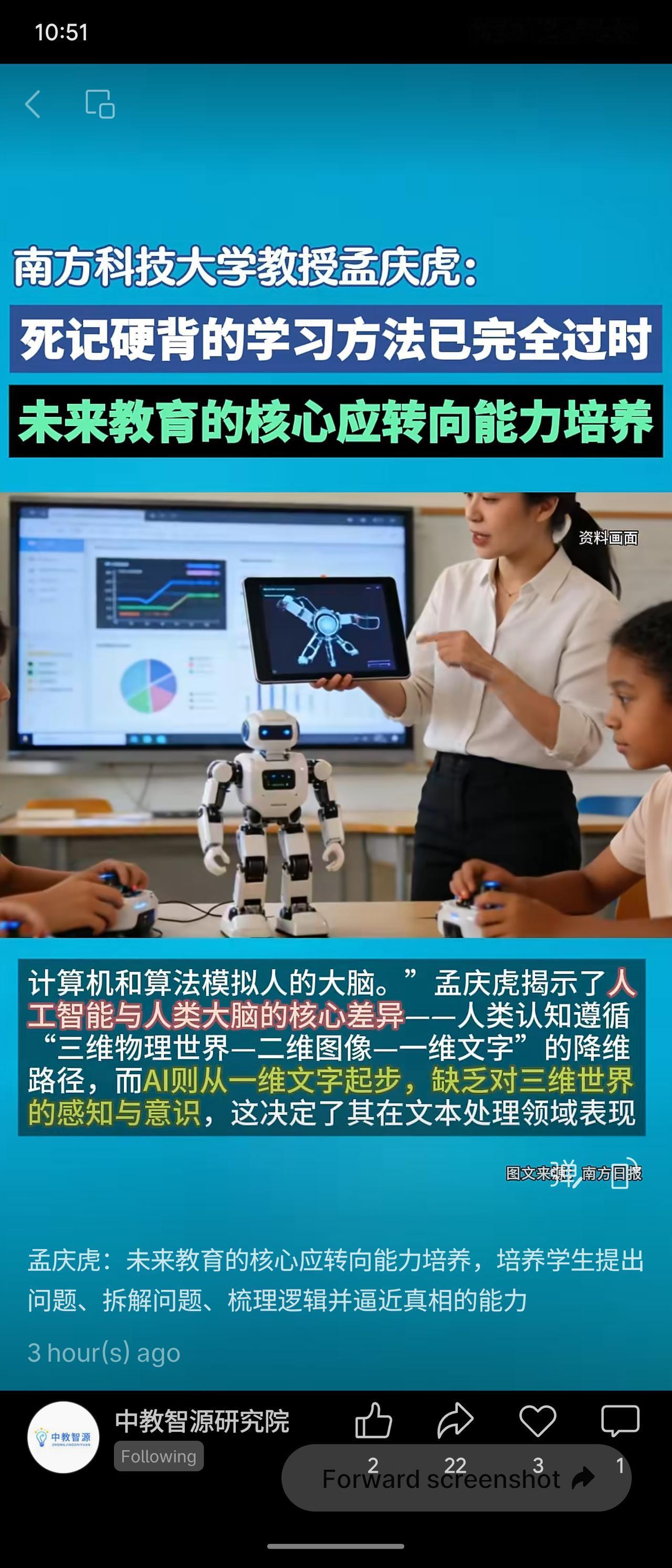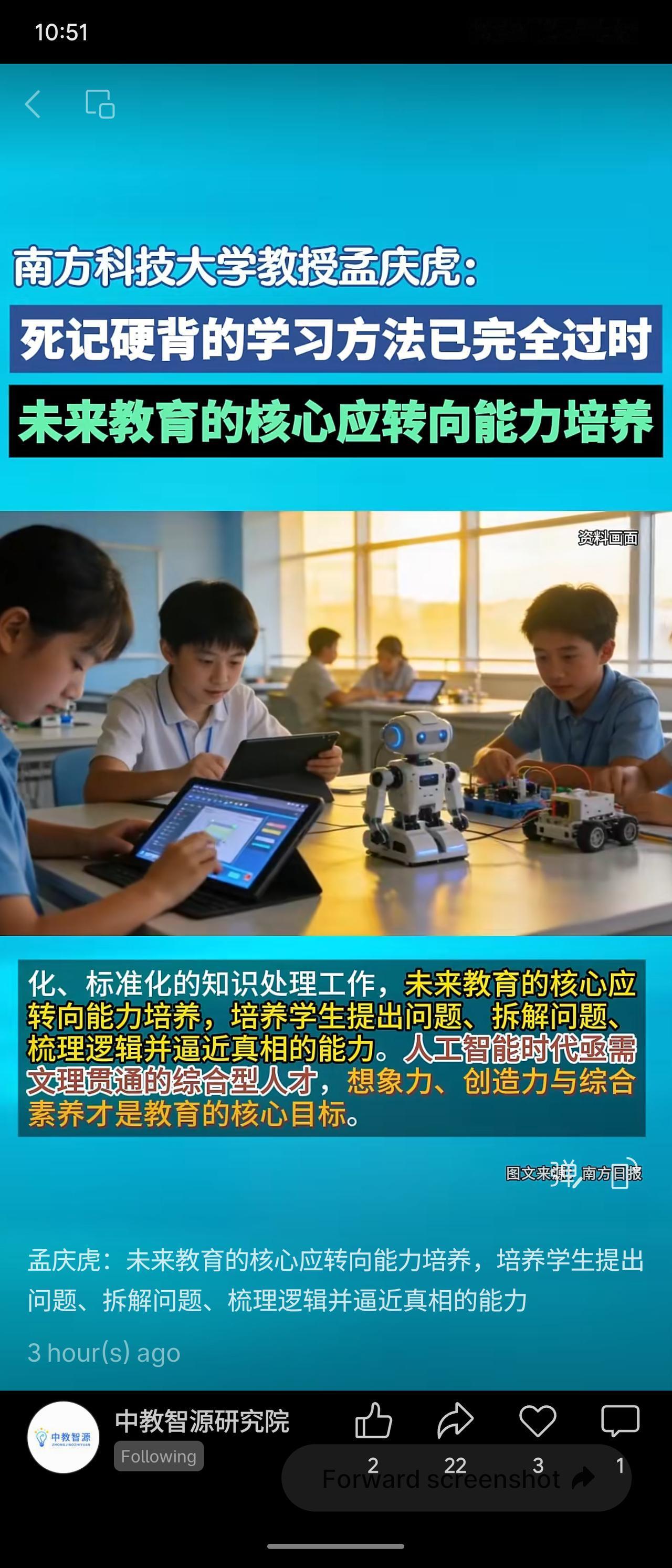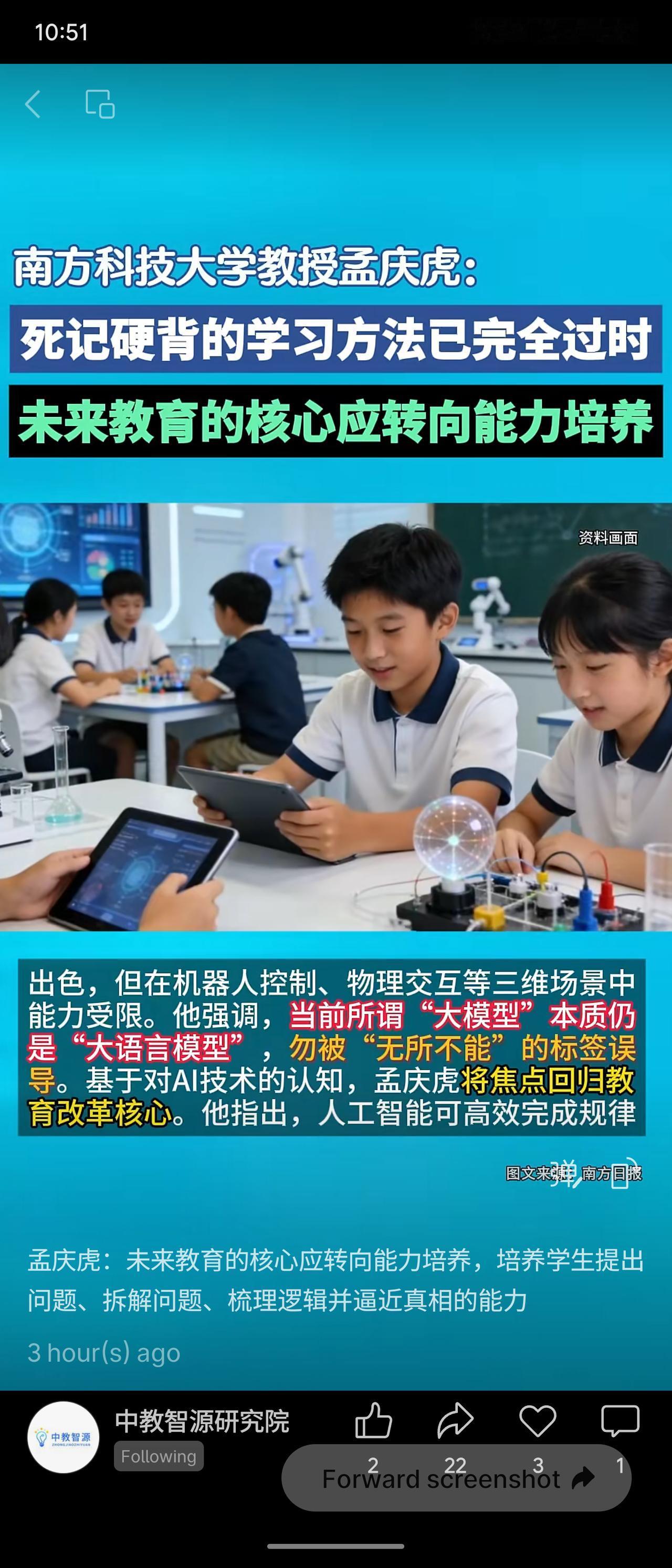南方科技大学教授孟庆虎指出,死记硬背的学习方法已完全过时,未来教育的核心应转向能力培养。他强调,AI虽擅长处理标准化知识,但缺乏对三维世界的感知与意识。教育应聚焦培养学生提出问题、拆解问题、梳理逻辑并逼近真相的能力,人工智能时代亟需文理贯通的综合型人才,想象力、创造力与综合素养才是核心目标。 这一观点顺应了AI技术发展的趋势,强调从知识传授转向能力塑造,为教育改革提供了清晰方向。