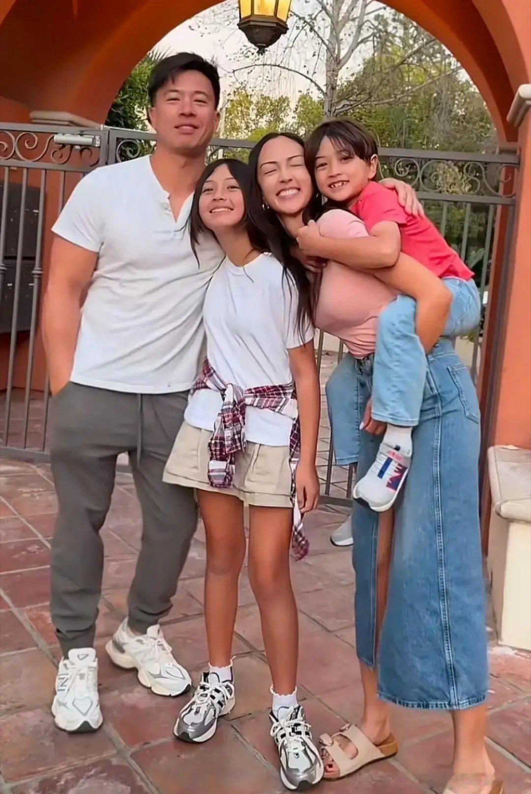 张天爱跟素人合影,胯真的好宽,大宅院似的