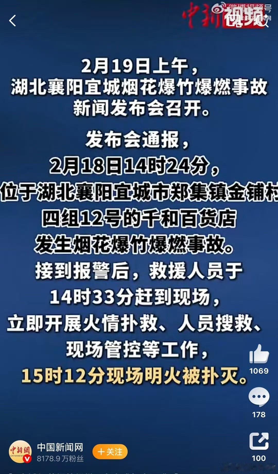 大年初二,新年伊始,在一年最快乐的时候出现了最让人难过的事情。 宜城烟花爆竹爆