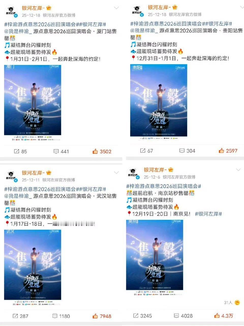 梓渝演唱会官媒报道,门票场场售罄,拉动的线下经济获当地文旅认可,以上皆是对梓渝游点意思演唱会的完全认可,梓渝与粉丝用绝对的实力交出了一份满分答卷