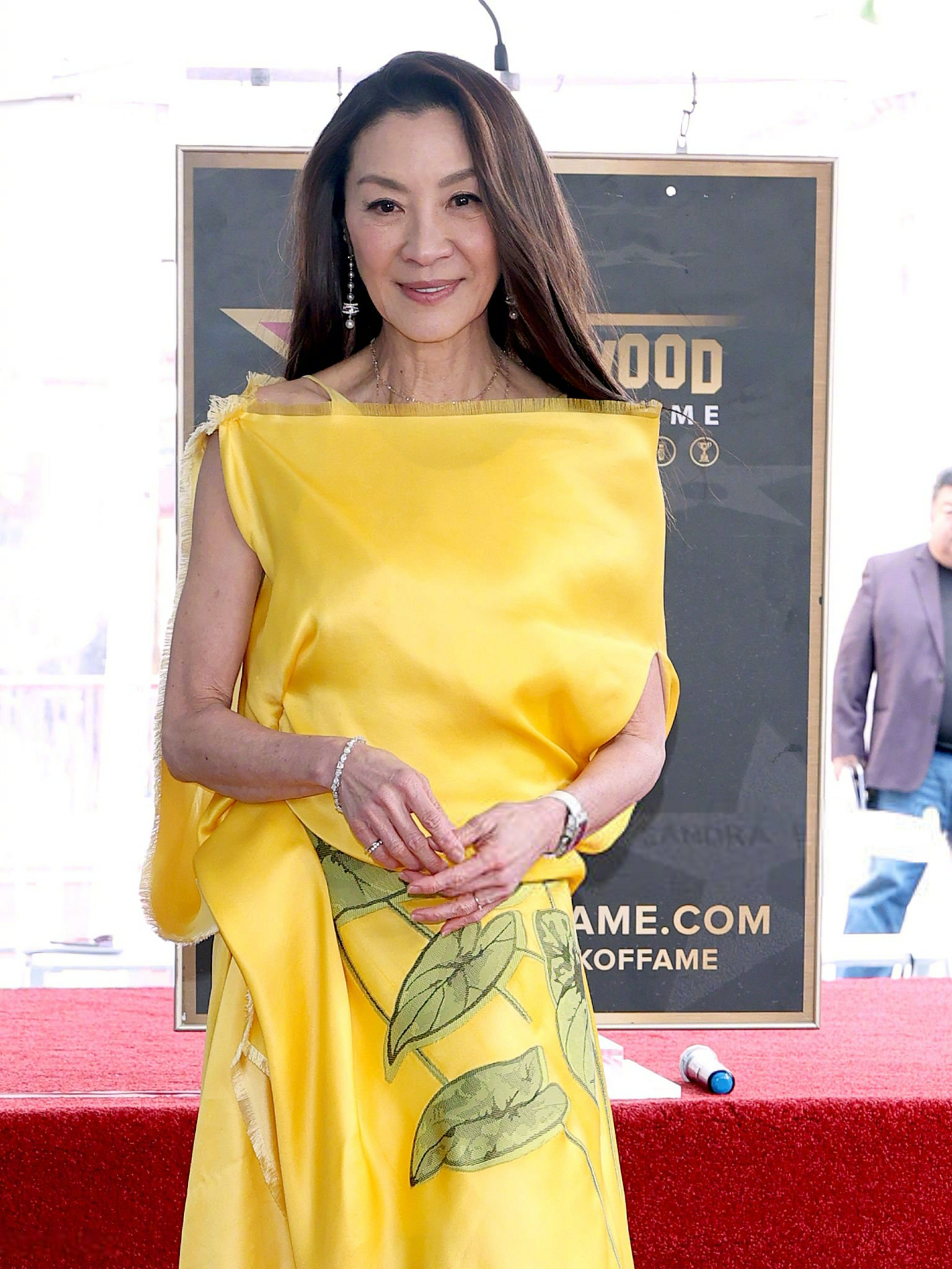 杨紫琼 正式留名好莱坞星光大道,又一位亚裔演员留名好莱坞,导演李安现场发表贺词,还有吴珊卓、奥卡菲娜、关继威等亚裔面孔现场见证。身穿Dior 26早秋系列亮相,明媚优雅的黄裙,“琼后”的魅力气场。🎬🌟💛 杨紫琼好莱坞大道留星