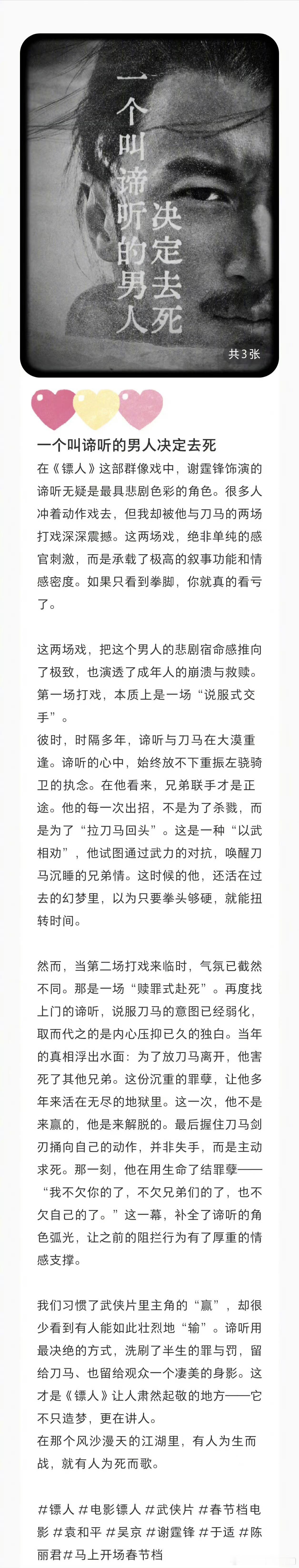 好怕谢霆锋突然拿出把吉他 谢霆锋演武侠也这么顶!《镖人》谛听气场强大,身手利落,台词戳心。听到“别来无恙”瞬间出戏,总怕他掏出吉他来一段现场!