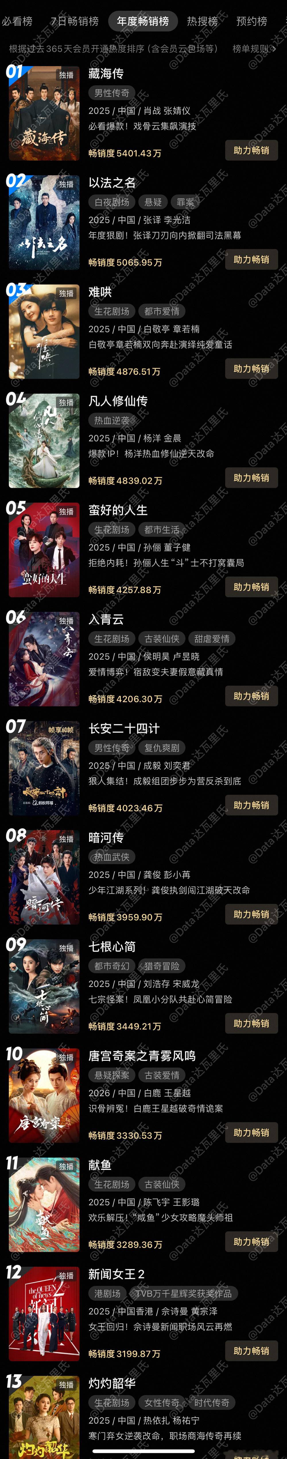白鹿、王星越唐宫奇案 优酷年度畅销榜进入前10,数值3330.53万;优酷热度最高10016(2.9)春节期间热度9500上下