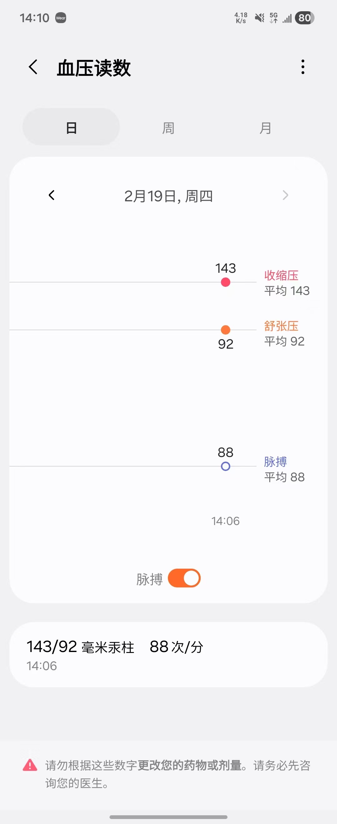 买了一块三星的watch7手表,买它是因为能测血压功能,去医院校正三次后,同时用手表和血压仪做了测量。手表测量数据收缩压143、舒张压92、脉搏88。血压仪测量结果收缩压141、舒张压92、脉搏88。很准,没白买!