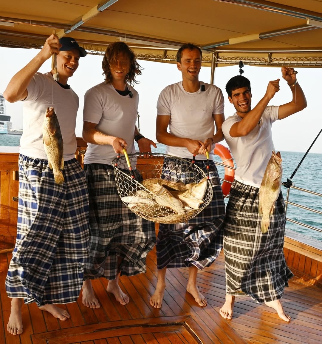 钓鱼佬们玩得可开心了🥳去钓鱼的只有梅德韦杰夫没有晋级八强