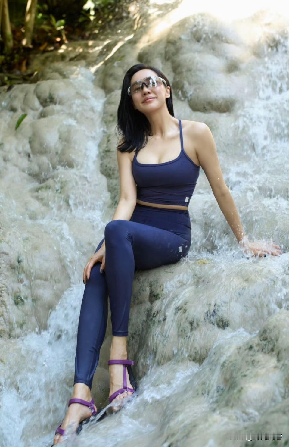王智瀑布前快乐嬉水!笑容阳光温暖。