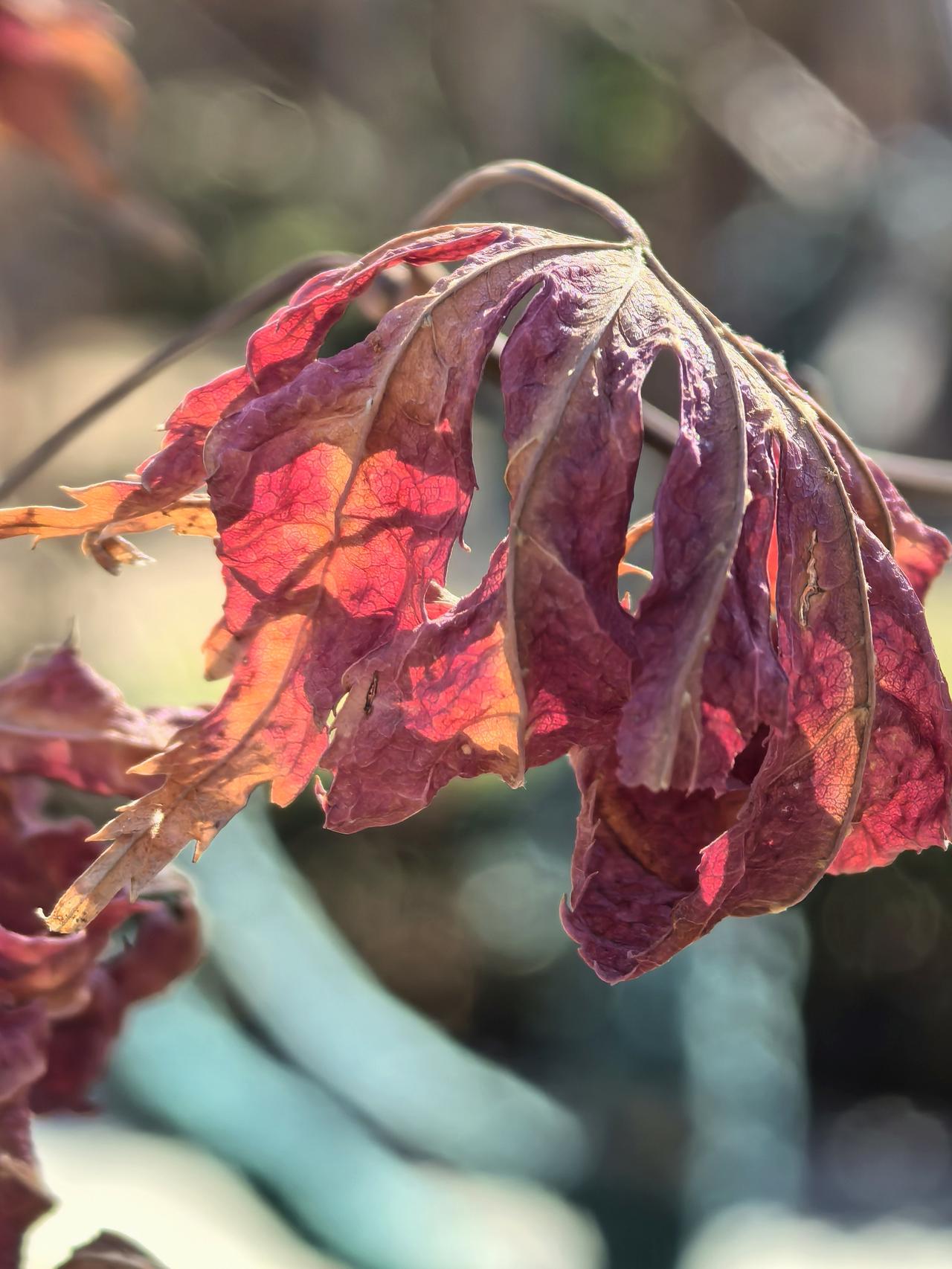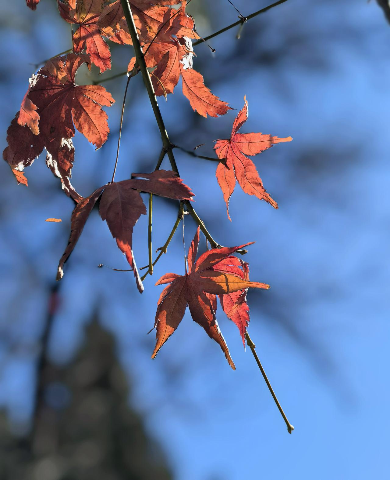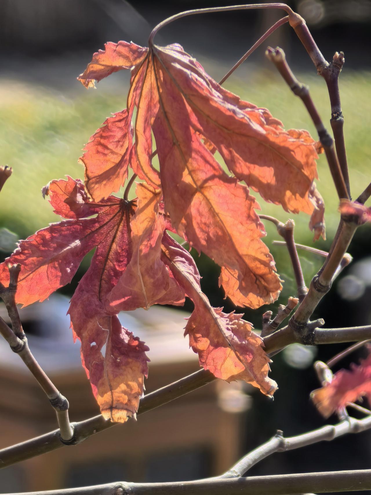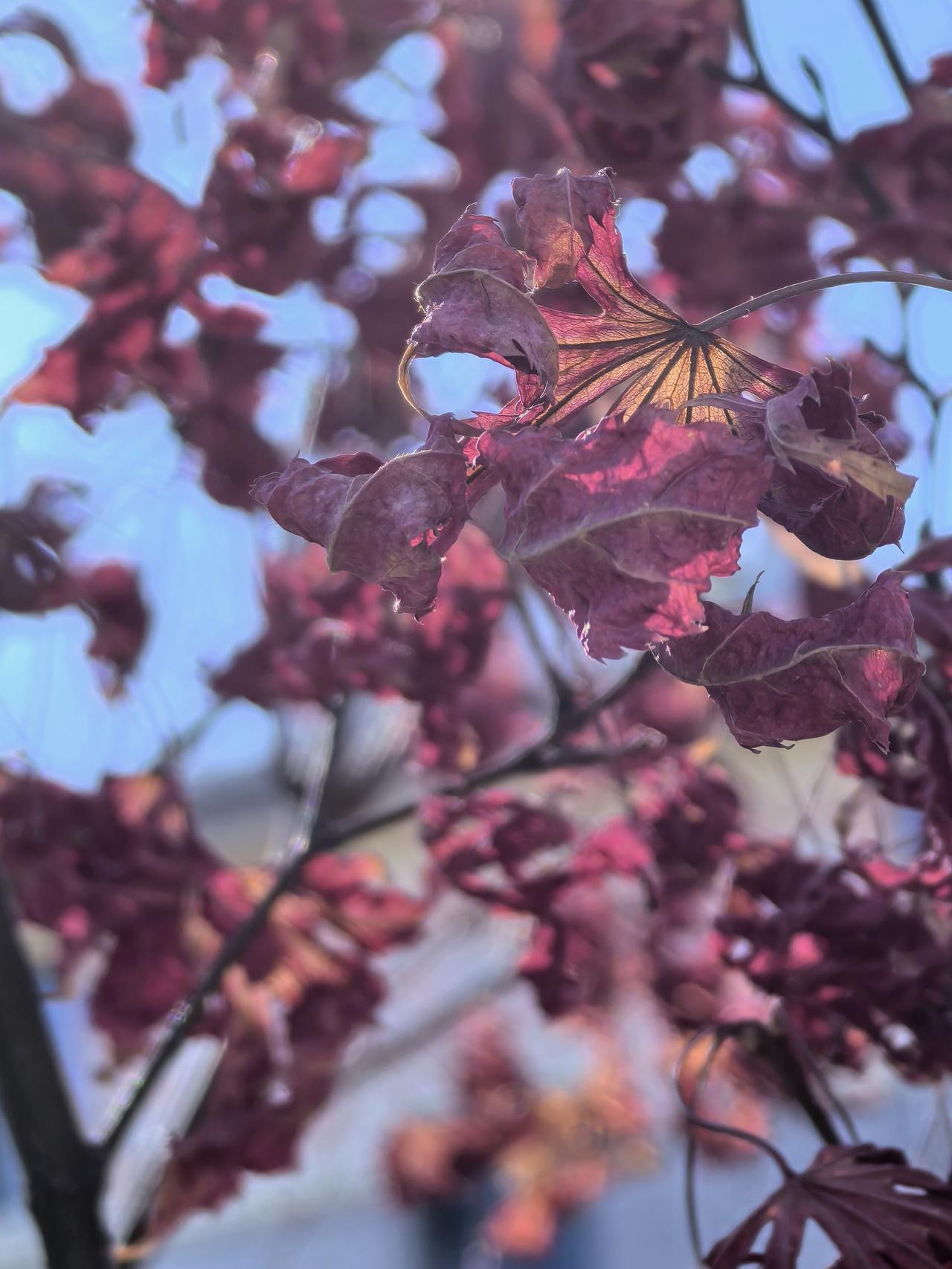 倔强迟迟不肯离去的红枫叶(友谊宾馆苏园)