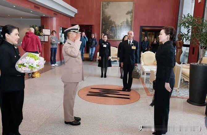 苏提达王后优秀!此次受国际冰球联合会主席卢克·塔尔迪夫先生的邀请,苏提达王后到访意大利米兰!意大利驻泰国大使、泰国驻意大利大使在马尔彭萨机场迎接王后的到来!