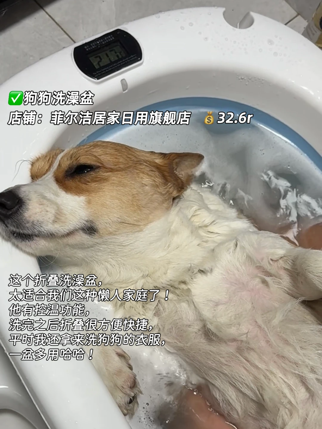 这个折叠洗澡盆,太适合我们这种懒人家庭了!他有控温功能,洗完之后折叠很方便快捷,平时我还拿来洗狗狗的衣服,一盆多用哈哈!